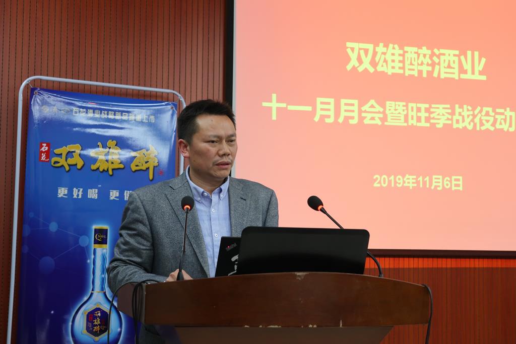 銷售總監(jiān)胡華俊作了《石花雙雄醉,開啟健康生活新方式——元春活動方案》的主題匯報,他對當前的市場形勢進行了分析,剖析了雙雄醉健康酒的優(yōu)勢與機會,對元春活動的主題、政策、保證措施、推進節(jié)奏的設計與安排進行了講解。