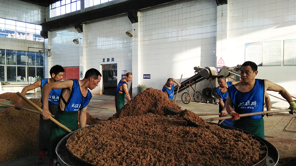 上午,團隊來到石花酒業(yè)產業(yè)園,在工作人員的引導下,一進入釀酒車間,VIP客戶們就被熱鬧的生產場景所吸引,身形矯健的工人師傅們正揮舞著生產工具,干勁十足,動作優(yōu)美,整個過程精心釀制,獨具匠心,雙雄醉健康白酒就在此釀造。工作人員介紹,石花霸王醉和石花雙雄醉基酒都在這里高品質釀造,所以說,石花雙雄醉健康酒與霸王醉同宗同源,恰如親生兄弟,血統(tǒng)高貴,氣質不凡。在釀造雙雄醉酒的過程中,在傳統(tǒng)地缸發(fā)酵、大曲清香工藝基礎上,融合了黑小麥、葛根素、羅漢果等對人體有益的多種原材料,酒體中具有SOD、葛根素等豐富的健康因子,口感與飲后反應獲得普遍贊譽。