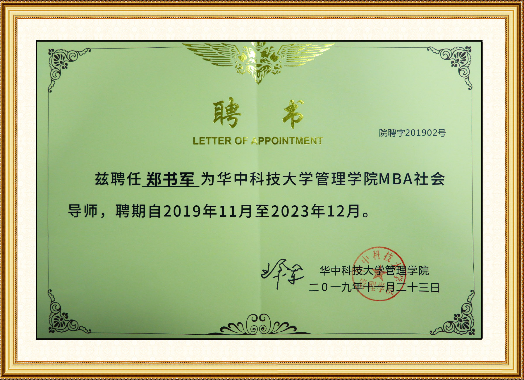 雙雄醉健康酒業(yè)總經(jīng)理鄭書(shū)軍被聘為華中科技大學(xué)MBA社會(huì)導(dǎo)師