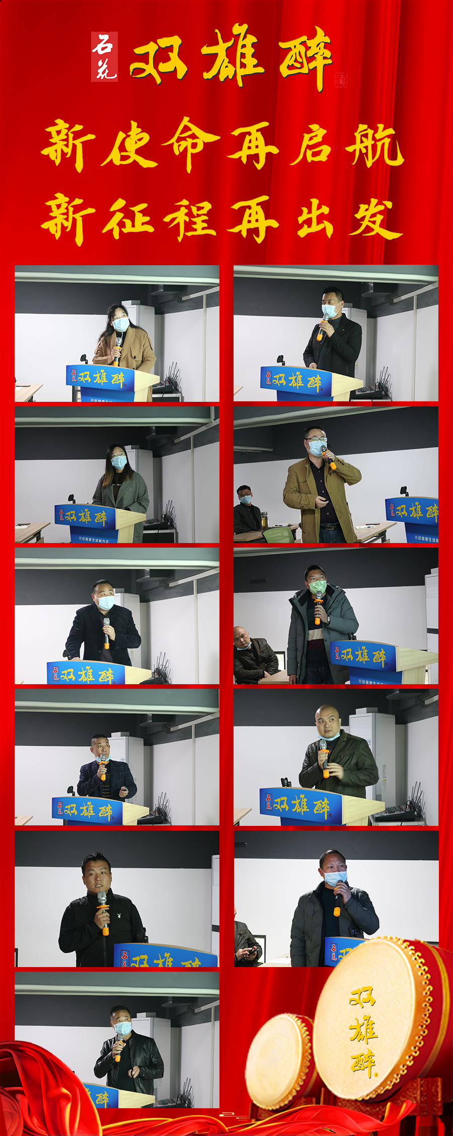 楊總勉勵(lì)團(tuán)隊(duì),雙雄醉正在朝著健康大事業(yè)的大道上沖鋒,全體員工都要珍惜難得的市場(chǎng)機(jī)會(huì)與公司提供的事業(yè)平臺(tái),以先進(jìn)員工為榜樣,爭(zhēng)創(chuàng)市場(chǎng)標(biāo)桿;加快個(gè)人成長(zhǎng)步伐,和最快進(jìn)步員工比一比;在全公司營(yíng)造“比、學(xué)、趕、超”的內(nèi)部競(jìng)爭(zhēng)氛圍,以速度沖刺規(guī)模,為公司的快速發(fā)展與個(gè)人的幸福生活而努力奮斗!