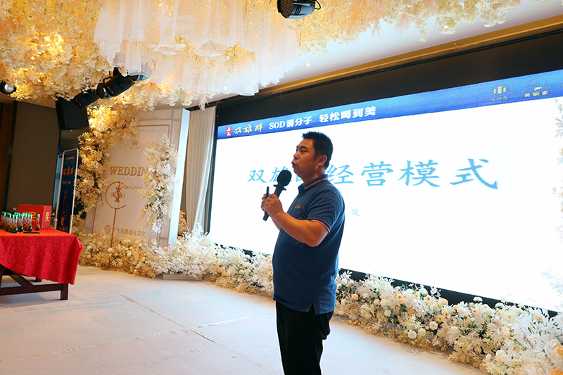 雙雄醉健康酒業(yè)總經(jīng)理鄭書軍發(fā)表了熱情洋溢的講話,鄭總對各位嘉賓長期跟隨石花酒業(yè)一起發(fā)展并積極銷售雙雄醉酒表示衷心感謝,鄭總強(qiáng)調(diào),健康白酒是未來的發(fā)展趨勢,石花雙雄醉是承載石花酒業(yè)未來發(fā)展的核心品牌,雙雄醉產(chǎn)品自2019年上市以來,市場發(fā)育良好,已在襄陽、武漢、十堰、開封等地形成流行氛圍,2020年,公司重點(diǎn)將在系統(tǒng)構(gòu)建、氛圍營造、公關(guān)活動和團(tuán)隊(duì)建設(shè)等方面下功夫,創(chuàng)新模式筑牢根基,培優(yōu)扶強(qiáng)聚焦成勢,與各位合伙人一起,共建、共生、共享!