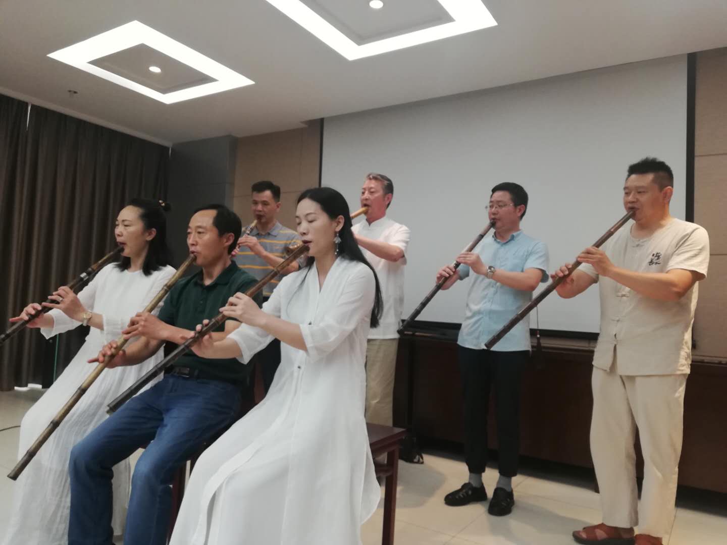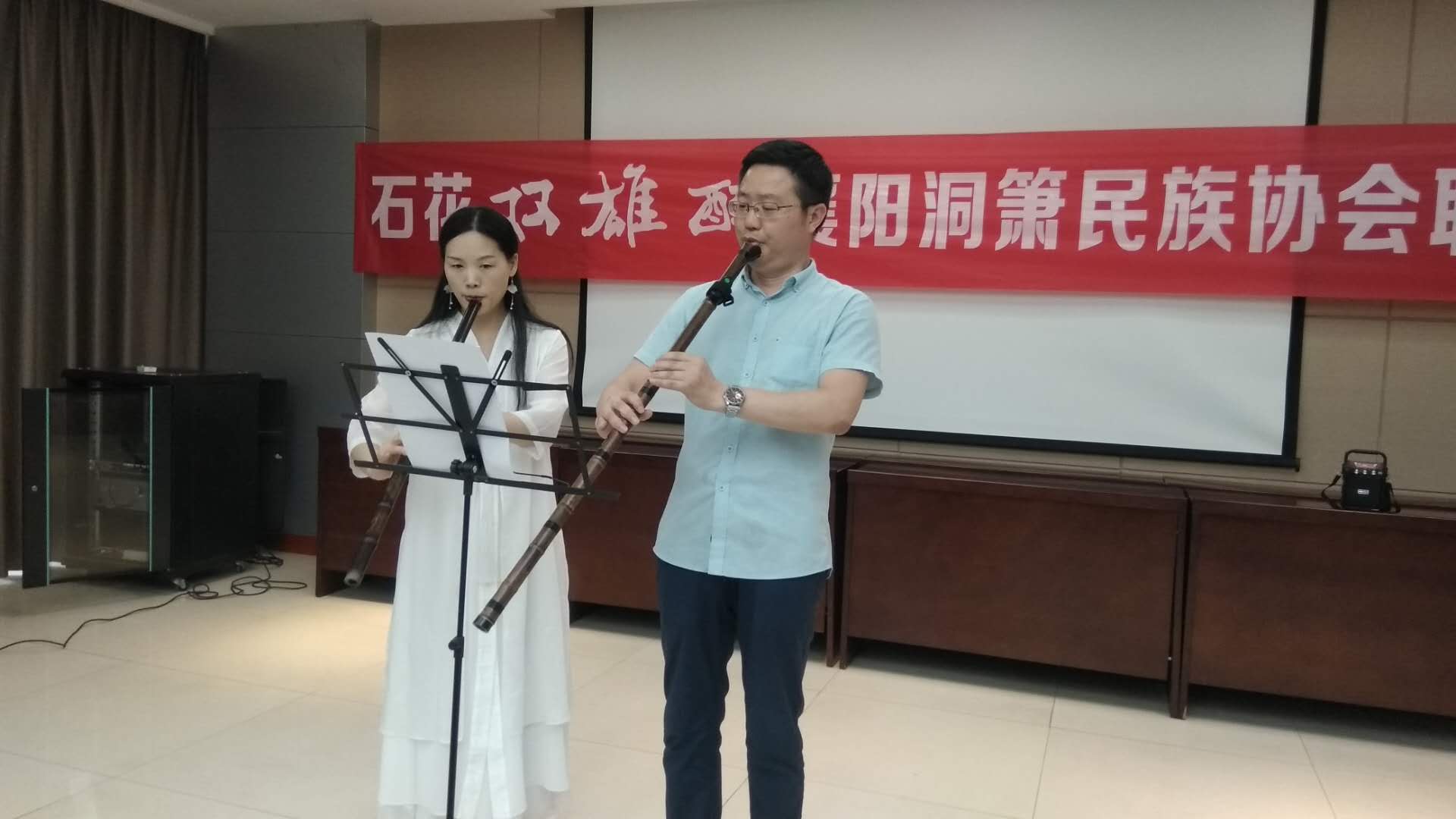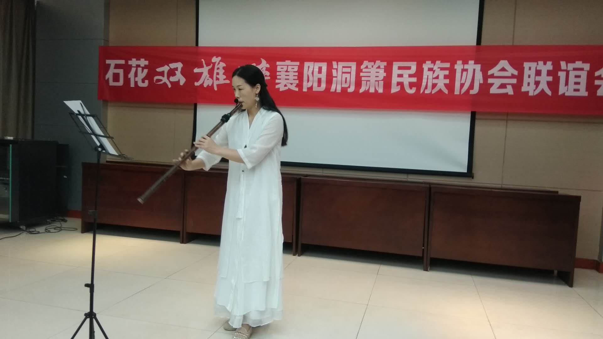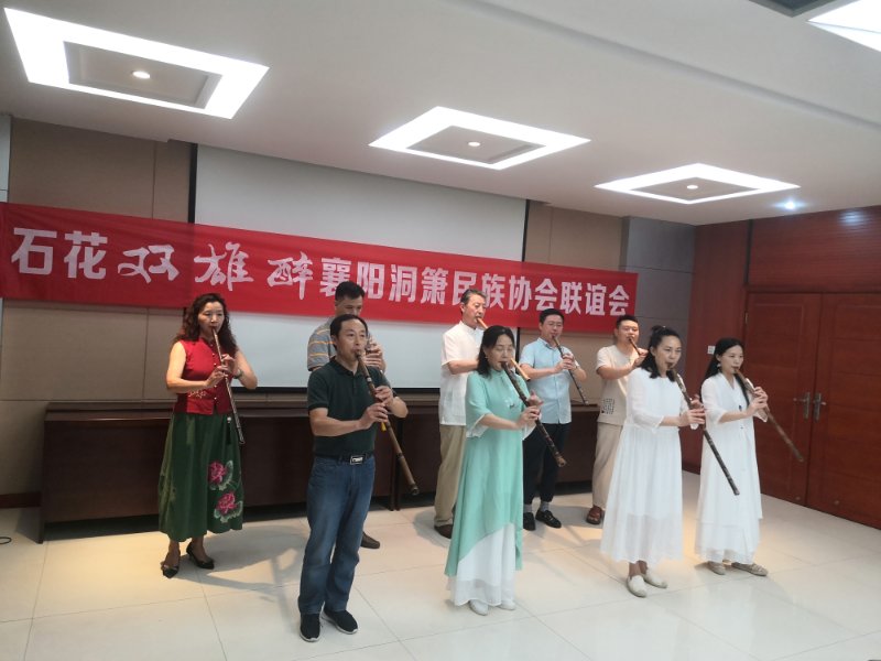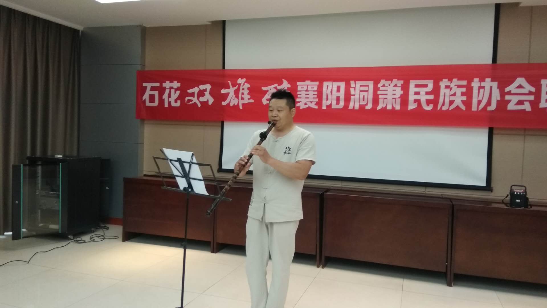 武當(dāng)麓下有高人,漢江河畔遇知音,6月6日,石花雙雄醉襄陽洞簫民族協(xié)會(huì)聯(lián)誼會(huì)在石花酒業(yè)產(chǎn)業(yè)園四樓報(bào)告廳盛大開啟。聯(lián)誼會(huì)由丹娜老師主持,協(xié)會(huì)會(huì)員30多人一起表演了《溪行桃花源》、《女兒情》、《桃花紅》、《綠水青山美》、《滄海一聲笑》等精彩節(jié)目。