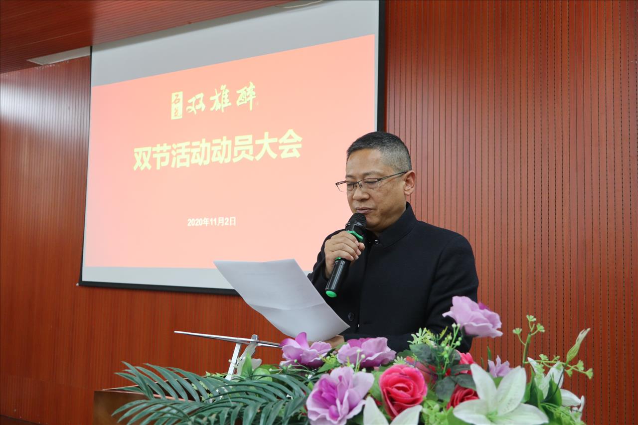 雙雄醉健康酒業(yè)總經(jīng)理鄭書(shū)軍作雙節(jié)活動(dòng)動(dòng)員報(bào)告,鄭總指出,在上半年經(jīng)營(yíng)工作中,雙雄醉銷(xiāo)售規(guī)模穩(wěn)步提升,品牌影響力逐漸顯現(xiàn),升學(xué)宴活動(dòng)取得圓滿成功,團(tuán)隊(duì)打造初見(jiàn)成效。經(jīng)營(yíng)年度下半年,有機(jī)遇也有挑戰(zhàn),希望每個(gè)“雙雄醉”人能夠提高主體意識(shí)、責(zé)任意識(shí)、危機(jī)意識(shí),咬定目標(biāo)不放松。