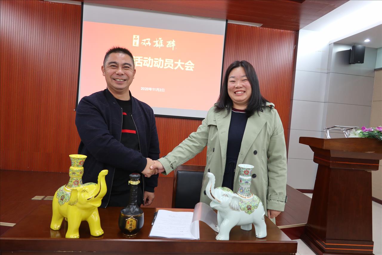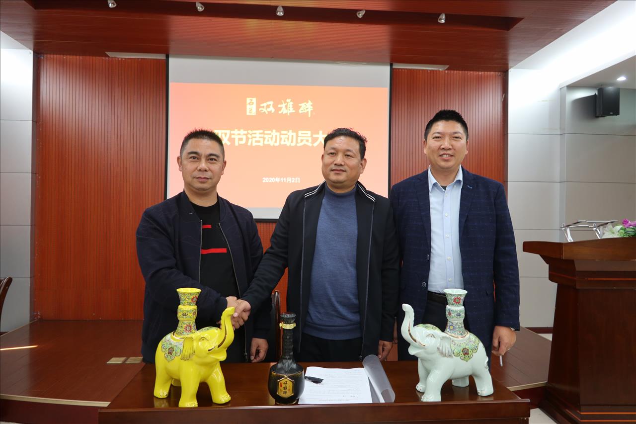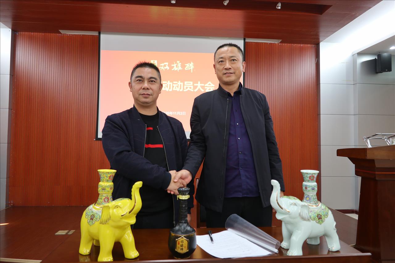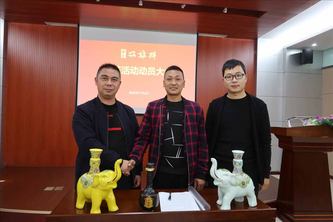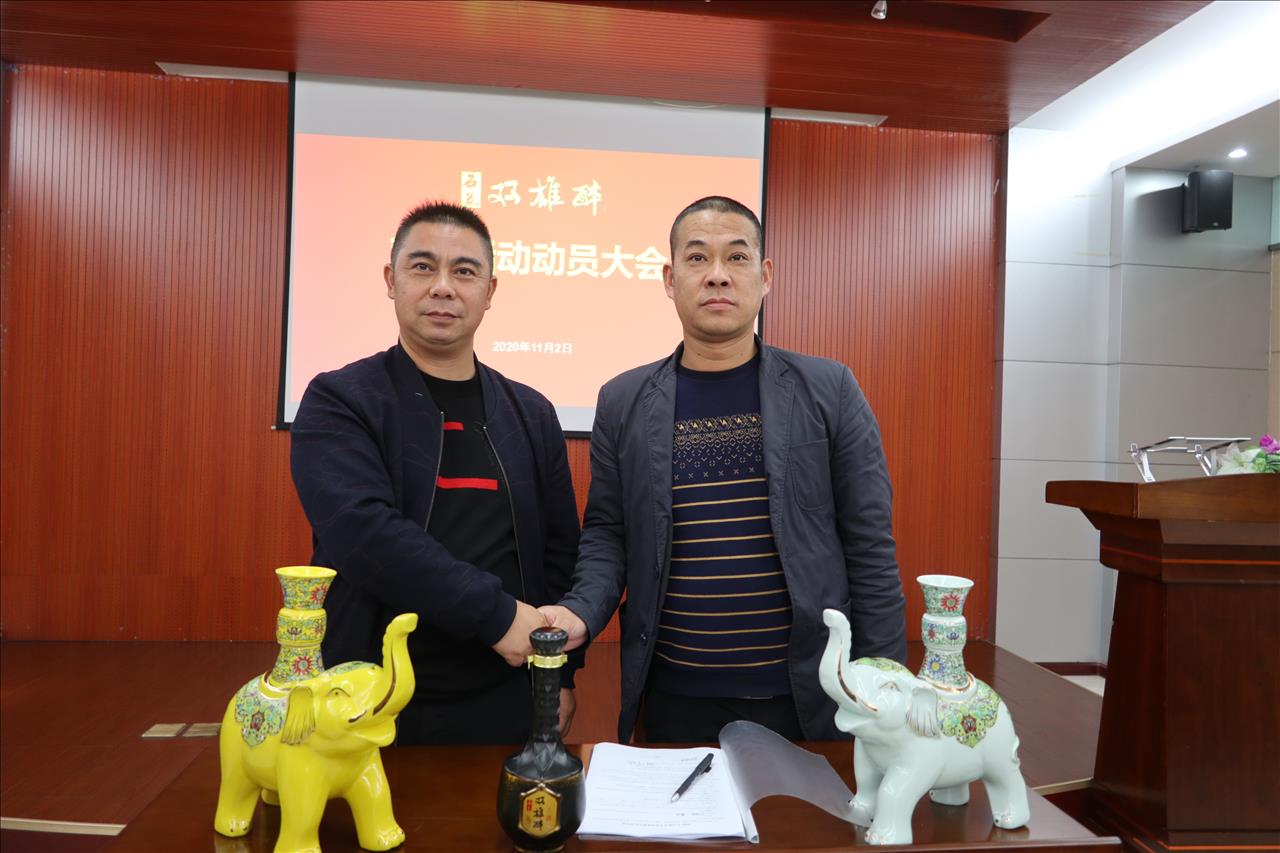 精兵集結(jié), 決勝旺季,2020年11月2日,雙雄醉健康酒業(yè)集結(jié)精兵強(qiáng)將和部分代理合伙人,在石酒產(chǎn)業(yè)園召開(kāi)旺季動(dòng)員大會(huì)。雙雄醉健康酒業(yè)總經(jīng)理鄭書(shū)軍、副總經(jīng)理?xiàng)罱ù旱裙绢I(lǐng)導(dǎo)出席本次會(huì)議。