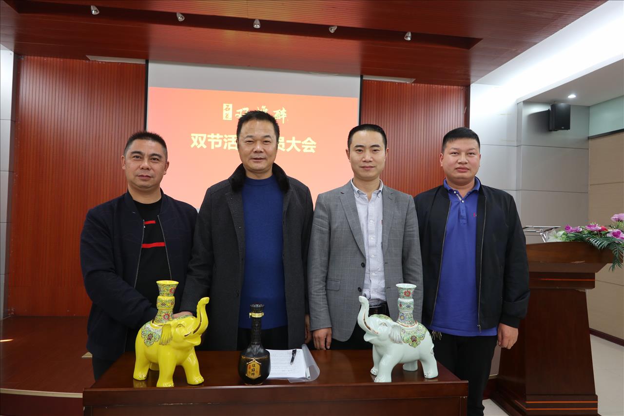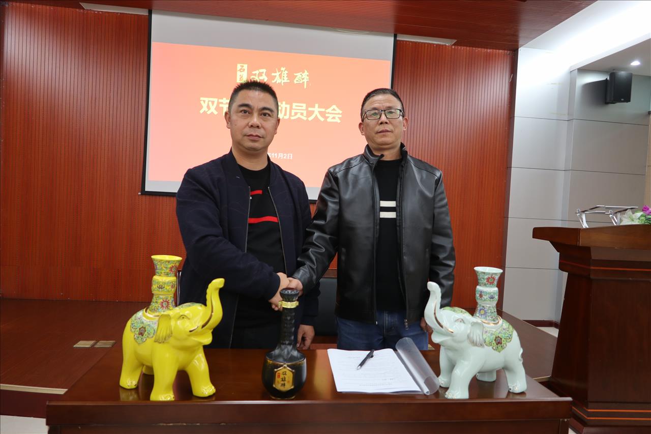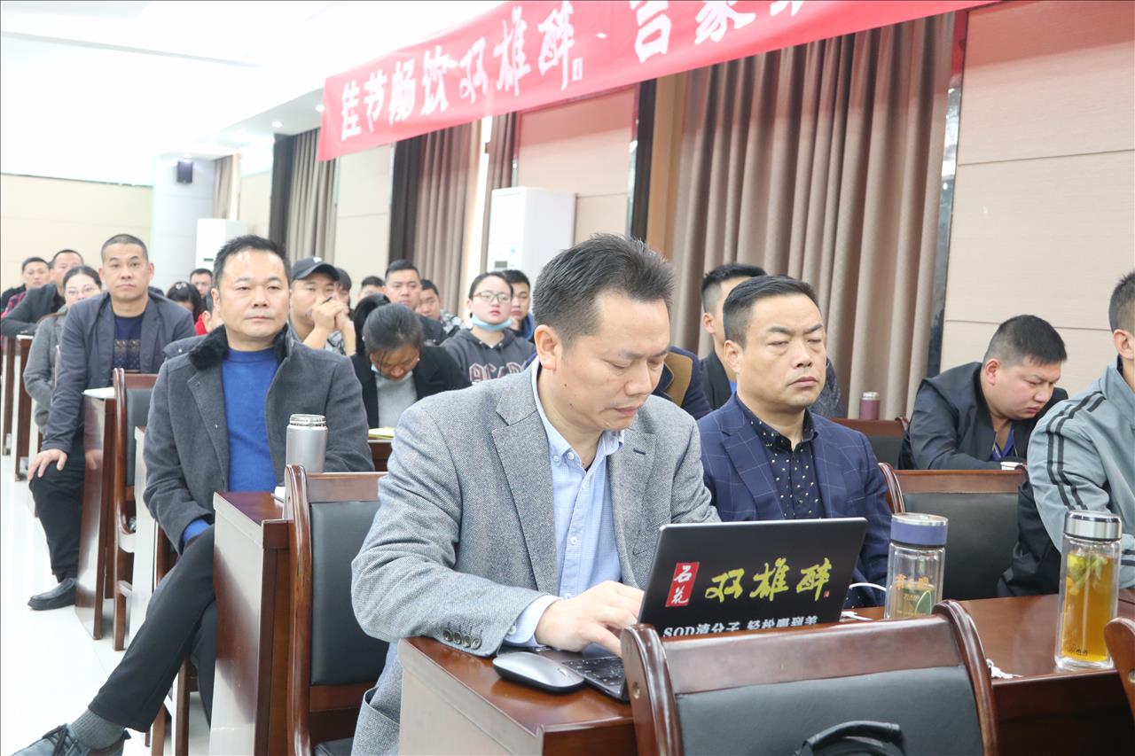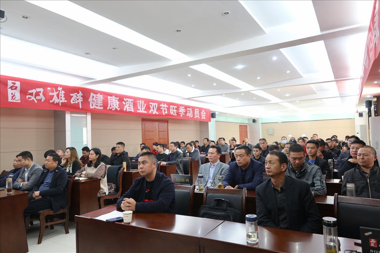 會(huì)議由雙雄醉健康酒業(yè)營(yíng)銷(xiāo)總監(jiān)胡華俊主持,胡總宣講了雙節(jié)活動(dòng)方案,雙雄醉雙節(jié)宣傳語(yǔ)“佳節(jié)暢飲雙雄醉,吉象如意帶回家”閃亮登場(chǎng)。大象自古就是靈獸,象諧音祥、相,寓意著吉祥如意、出將入相,靈象現(xiàn)世則天下太平。2020年是不平凡的一年,因?yàn)橐咔?,每一次親朋相聚,都倍感珍惜,2021年,團(tuán)聚在一起,一起喝雙雄醉健康酒,過(guò)吉祥如意年,為回饋消費(fèi)者,雙雄醉健康酒業(yè)特準(zhǔn)備了數(shù)萬(wàn)壇“吉象如意”酒和“萬(wàn)象更新”酒投放市場(chǎng),讓數(shù)萬(wàn)家庭都能夠享受健康好酒、享受吉祥安康!太平有象!
