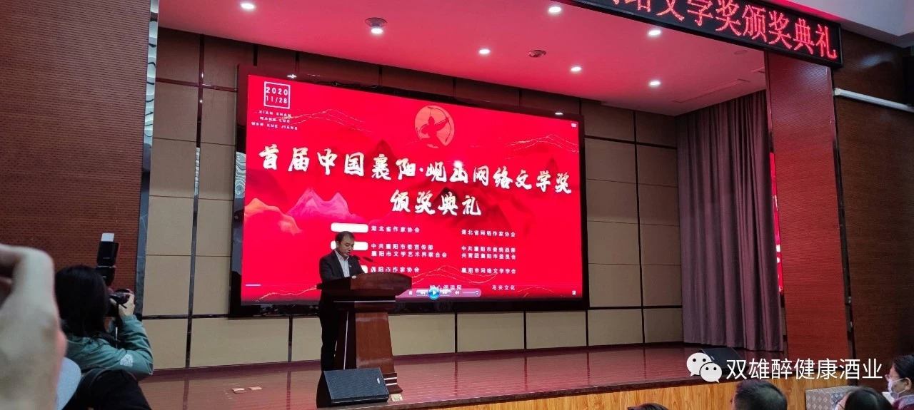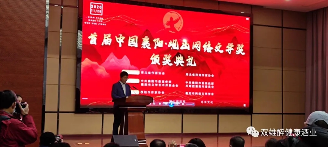 11月28日,中國襄陽·峴山網絡文學獎頒獎典禮在襄陽市工會干校舉行。網絡文學大咖“匪我思存”、“吱吱”、“羅曉”、“滄溟水”、“心在流浪”等150余人參加頒獎典禮活動。仙俠經典劇《仙劍奇?zhèn)b傳》作者“管平潮”、熱播劇《慶余年》作者“貓膩”、《誅仙》作者“蕭鼎”、《變臉武士》作者“跳舞”等來自全國的嘉賓通過線上進行了互動并致賀。此次網絡文學頒獎活動是近年來襄陽規(guī)格最高、規(guī)模最大的一次文學盛會。雙雄醉健康酒業(yè)為此次活動提供贊助,雙雄醉健康酒Q300億為慶典指定用酒。