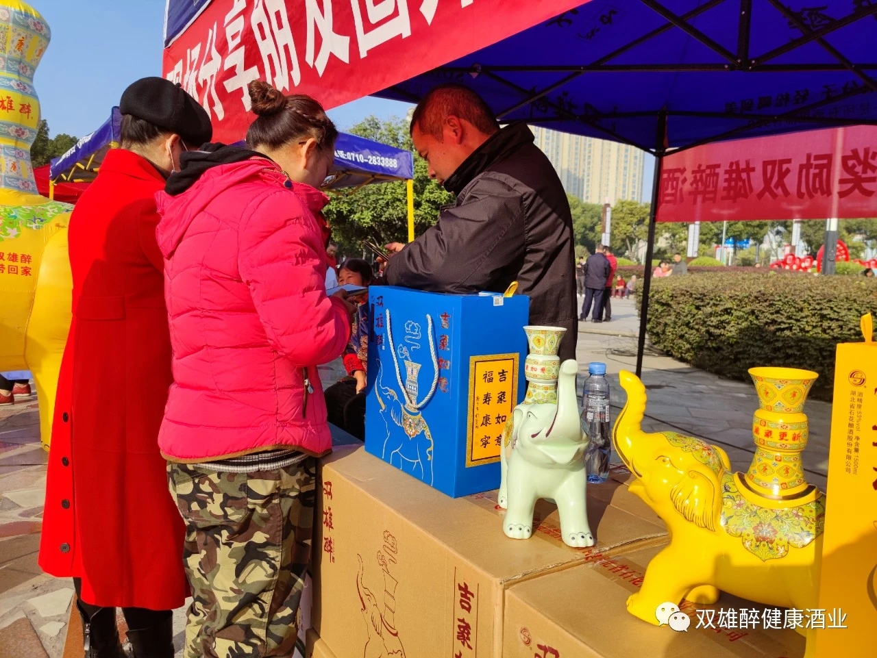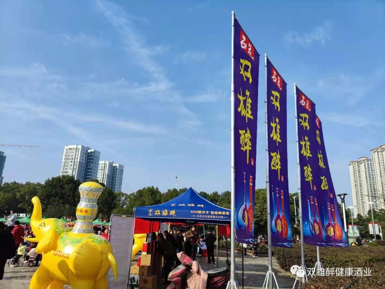 佳節(jié)暢飲雙雄醉,吉象如意帶回家,石花雙雄醉襄州區(qū)域經(jīng)理彭海軍代表公司發(fā)言,希望美酒雙雄醉給大家?guī)砑槿缫?、福壽康寧的好運氣,帶來萬象更新、蒸蒸日上的新機遇!并祝各位來賓、各位朋友們?nèi)缤p雄醉酒的品質(zhì)一樣,更美、更順、更健康!預(yù)祝廣場舞大賽圓滿成功!
