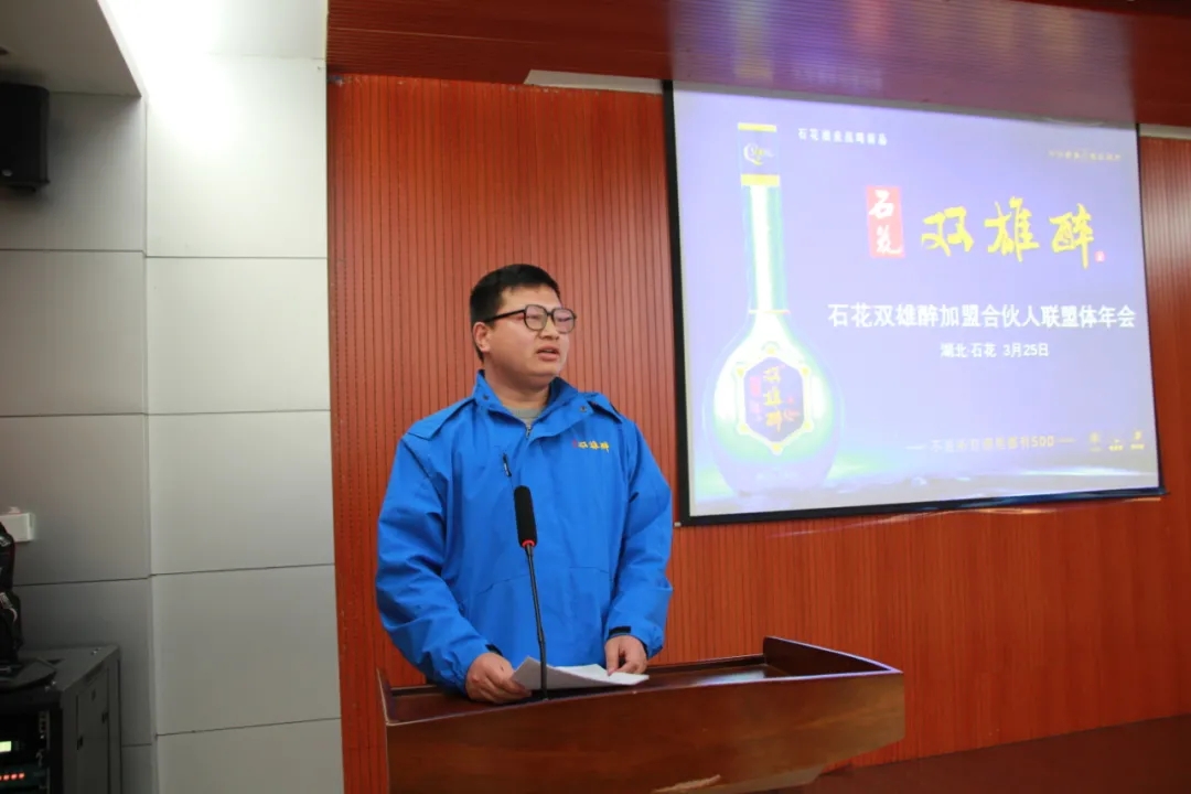 雙雄醉石花區(qū)域代理合伙人周其洋對(duì)各位合伙人的到來表示熱烈歡迎和衷心的感謝!過去的一年,各位合伙人在公司鄭總的正確的領(lǐng)導(dǎo)下,在“共建、共生、共享”公司核心理念的紐帶下,在陳必貴經(jīng)理的精心指導(dǎo)和支持下,齊心協(xié)力擰成一股繩,高舉健康酒旗幟,紛紛加盟為合伙人。一年來,經(jīng)過大家的努力,雙雄醉在石花區(qū)域,已經(jīng)成為了流行品牌,部分合伙人將石花雙雄醉酒作為主要經(jīng)營(yíng)產(chǎn)品,雙雄酒的市場(chǎng)氛圍越來越好,影響力越來越大。石花區(qū)域也被公司評(píng)選為優(yōu)秀區(qū)域。雙雄醉石花區(qū)域代理合伙人周其洋也在此鄭重承諾,帶頭踐行順價(jià)銷售;對(duì)各位合伙人的配貨需求,有求必應(yīng);堅(jiān)決落實(shí)公司的各項(xiàng)政策;和各位合伙人同心合力,一起共建、共生、共享。新的一年,和衷共濟(jì),大家攜起手來,一起做大做強(qiáng)!