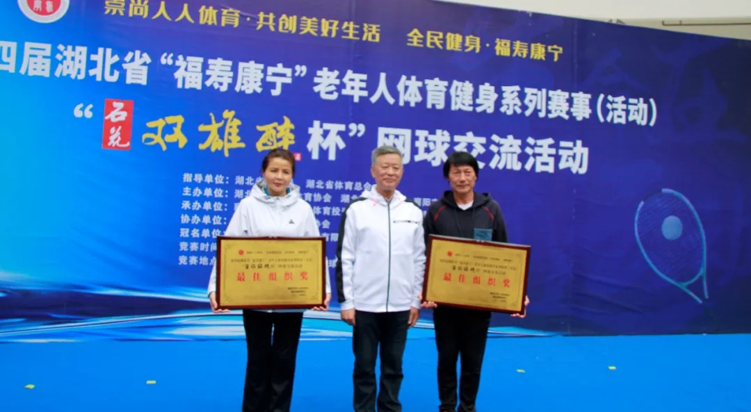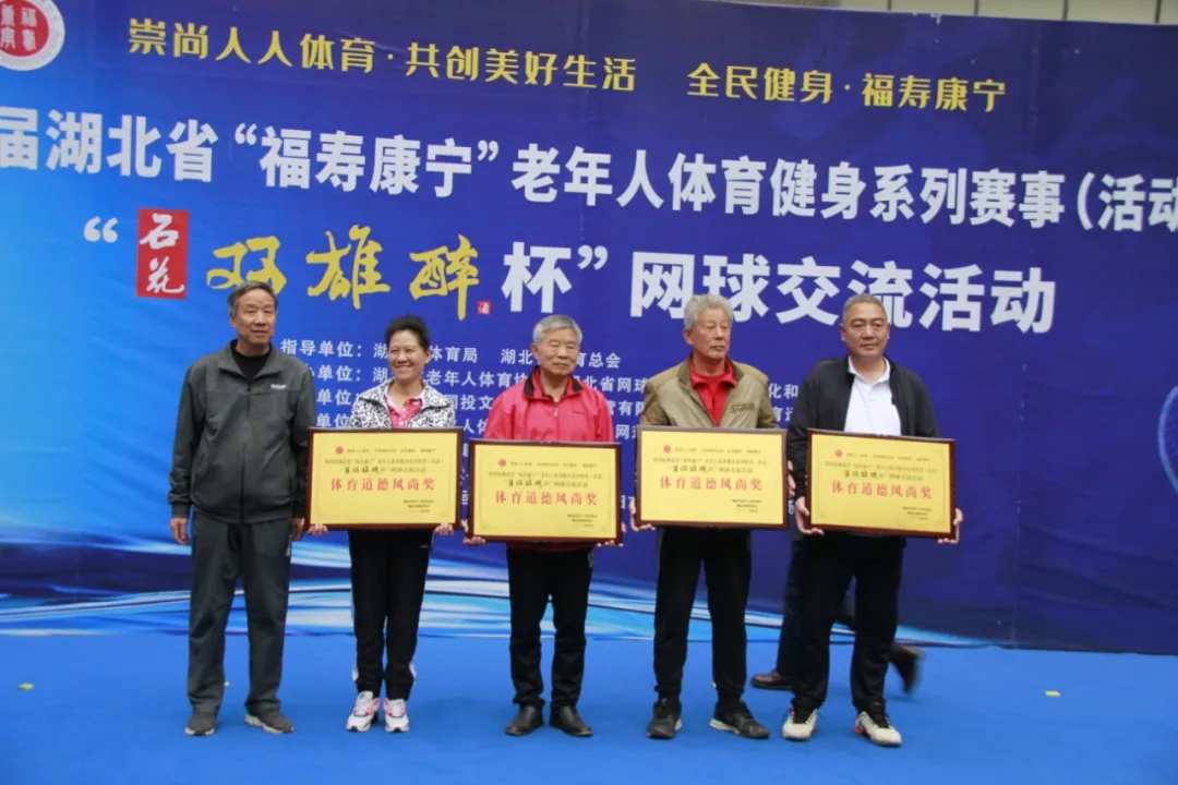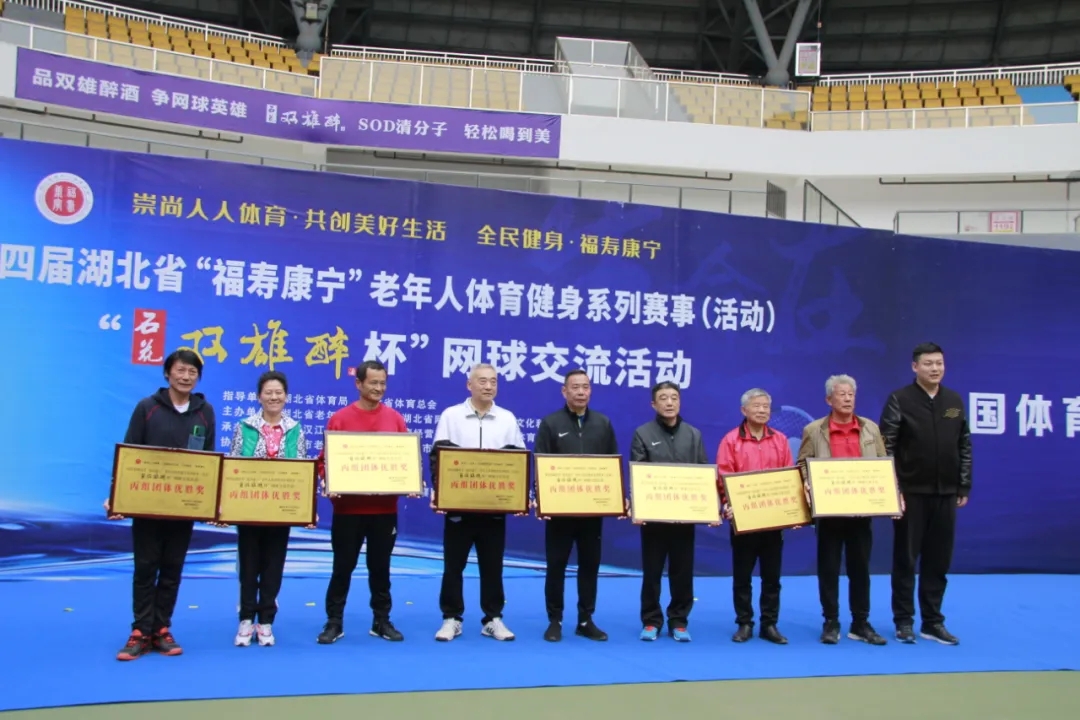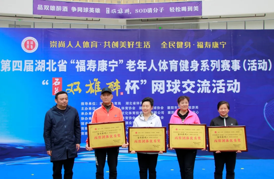 品雙雄醉酒,爭(zhēng)網(wǎng)球英雄。4月25日,第四屆湖北省“福壽康寧”老年人體育健身系列賽事“石花雙雄醉杯”網(wǎng)球交流活動(dòng)在襄陽(yáng)全民健身中心圓滿閉幕。省老年人體育協(xié)會(huì)常務(wù)副主席李紀(jì)剛、市文化和旅游局副局長(zhǎng)沈德松、市網(wǎng)球協(xié)會(huì)主席曾玉平等領(lǐng)導(dǎo)出席頒獎(jiǎng)儀式。