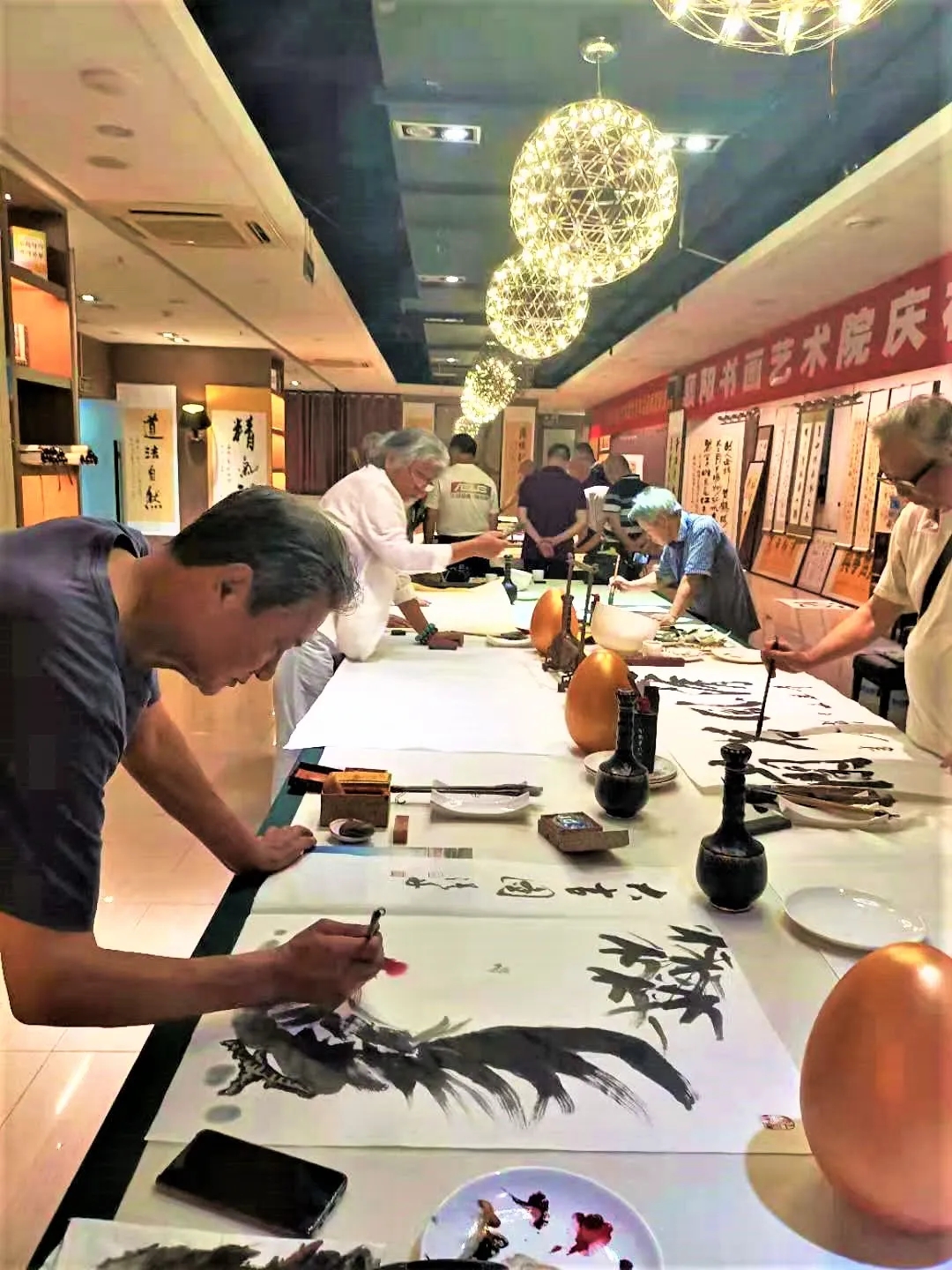 此次書畫展的舉辦,也為廣大書畫藝術(shù)家和愛好者搭建了展示才華、互相交流的舞臺(tái)。展會(huì)期間,還有多位知名藝術(shù)家在現(xiàn)場進(jìn)行書畫創(chuàng)作,并進(jìn)行了細(xì)致深入的交流。