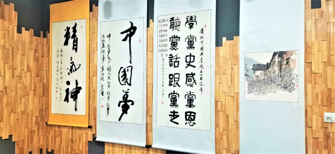 本次書畫展在屏襄門學(xué)聯(lián)社二樓舉辦,共征集到書畫作品100余幅,經(jīng)專家、學(xué)者嚴(yán)格把關(guān),遴選出50幅作品入展。深情禮贊中國共產(chǎn)黨的百年歷程和豐功偉績,歌頌了中國人民在黨的領(lǐng)導(dǎo)下取得的巨大成就,藝術(shù)地再現(xiàn)了祖國的大好河山和繁榮景象。