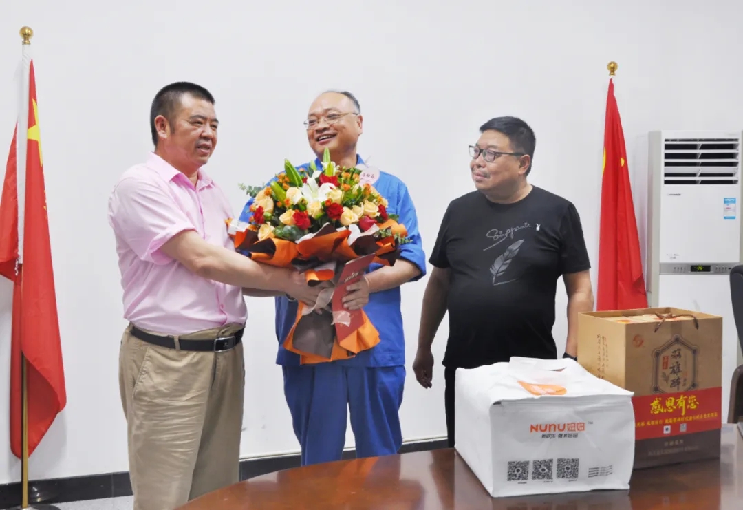 8月4號,得知襄陽龍蟒鈦業(yè)有限公司靳三良總經(jīng)理過生日的消息后,襄陽企聯(lián)常務副會長兼秘書長趙樂成、南漳企聯(lián)會長張傳明、企聯(lián)數(shù)據(jù)部部長劉輝、雙雄醉大客戶服務部總監(jiān)李愛軍,手捧鮮花,拿著生日賀卡以及雙雄醉頂級酒——清罇優(yōu)醬,向靳三良總經(jīng)理送上生日祝福,準備了精美的生日蛋糕,“祝您生日快樂,祝您生日快樂……”大家齊聲為靳三良總經(jīng)理唱起了生日歌,還紛紛送上了生日祝福:“靳三良總經(jīng)理,今天是你的生日,石花雙雄醉和襄陽企聯(lián)祝你生日快樂,感謝你帶領企業(yè)發(fā)展為襄陽作出的貢獻!”