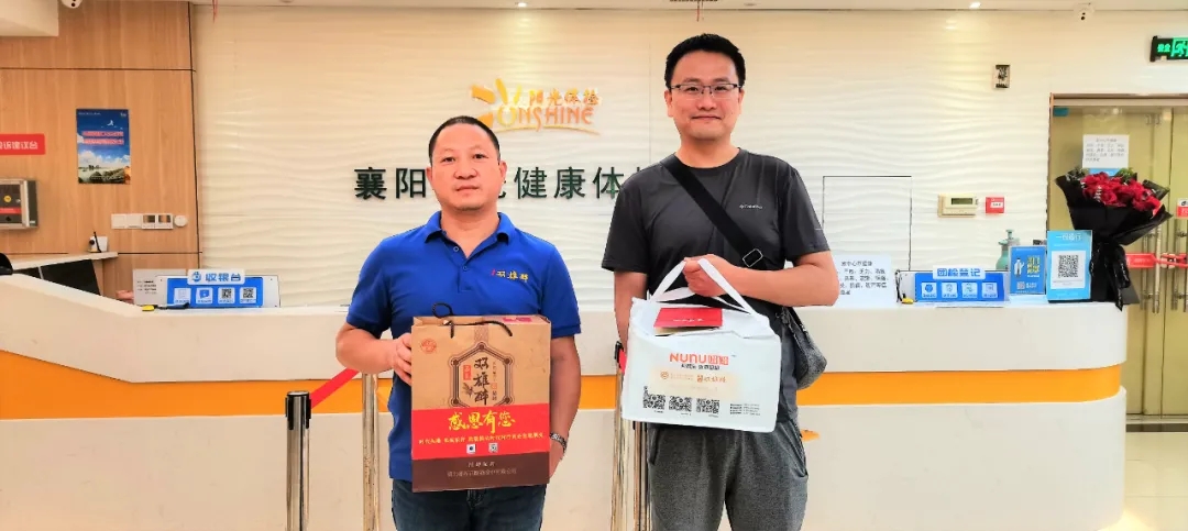 8月15日,襄陽市企業(yè)聯(lián)合會數(shù)據(jù)部部長劉輝、雙雄醉健康酒業(yè)大客戶服務(wù)部總監(jiān)李愛軍,前往襄陽陽光健康體檢中心有限公司,為王曦總經(jīng)理送上生日祝福。