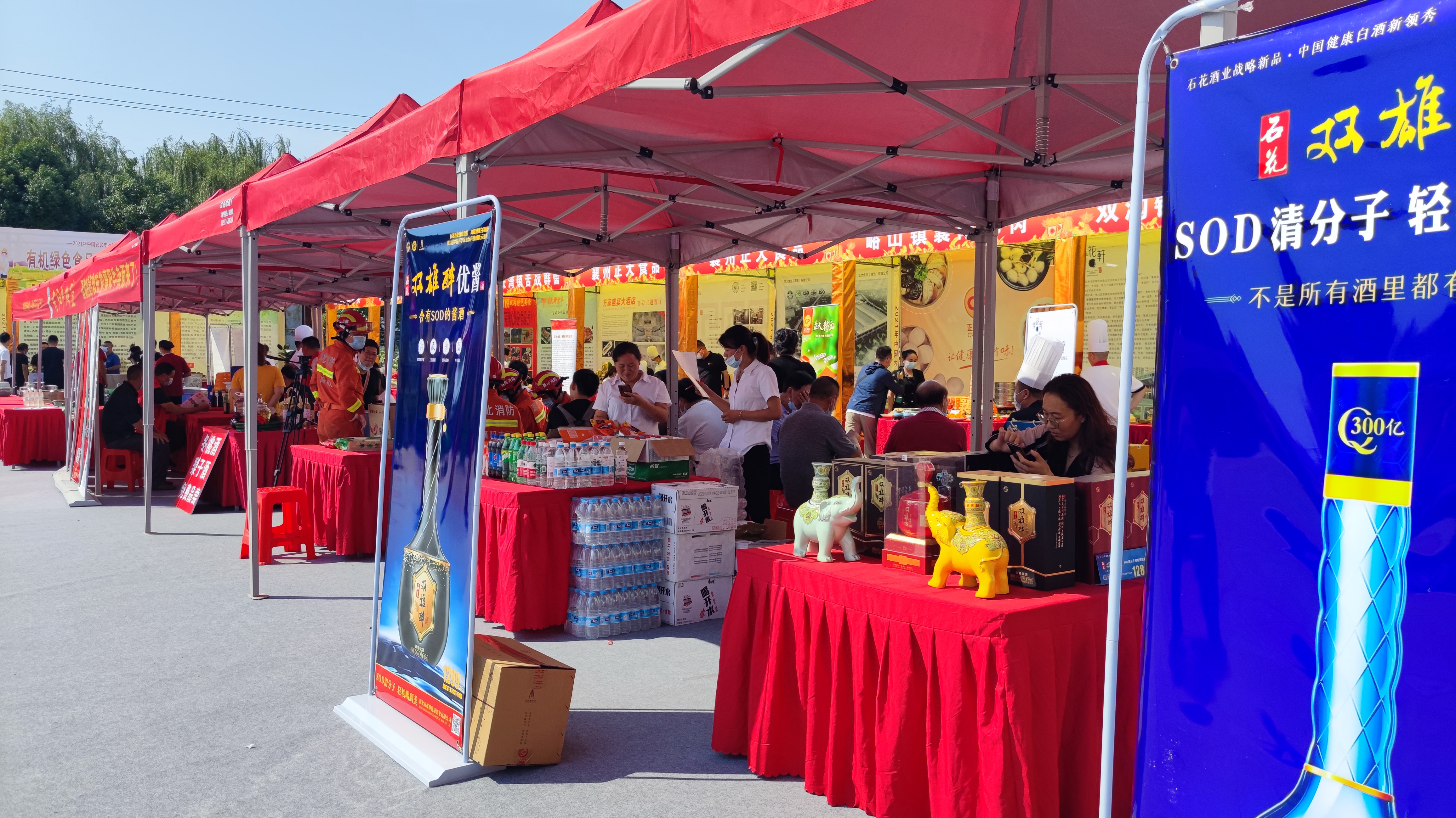 活動(dòng)現(xiàn)場(chǎng),石花雙雄醉健康白酒作為本地產(chǎn)品亮相豐收節(jié),采用襄陽(yáng)本地益微SOD黑小麥作為釀酒原料的雙雄醉健康白酒是本地特色的健康白酒品牌。