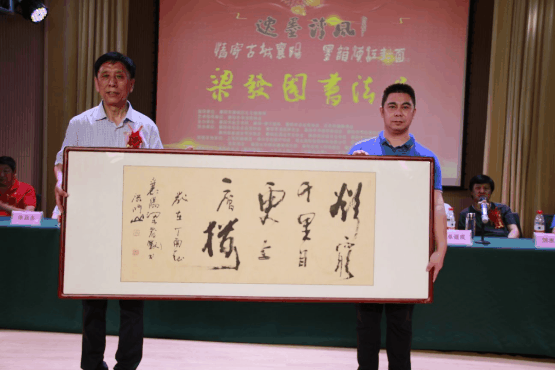 雙雄醉健康酒業(yè)營銷總監(jiān)胡華俊致辭,襄陽是中國歷史文化名城,中國書法名城。襄陽歷史上璀璨的書法大家,綿延不絕的書法新人,不斷印證、豐富了歷史文化名城的品質(zhì),使書法名城錦上添花。梁發(fā)國先生是石花酒業(yè)的老朋友,近年來,他潛心研習書法,站在他的作品前,能感受到一股厚重之風,賞心悅目,這與他豐富的人生閱歷是相輔相成。