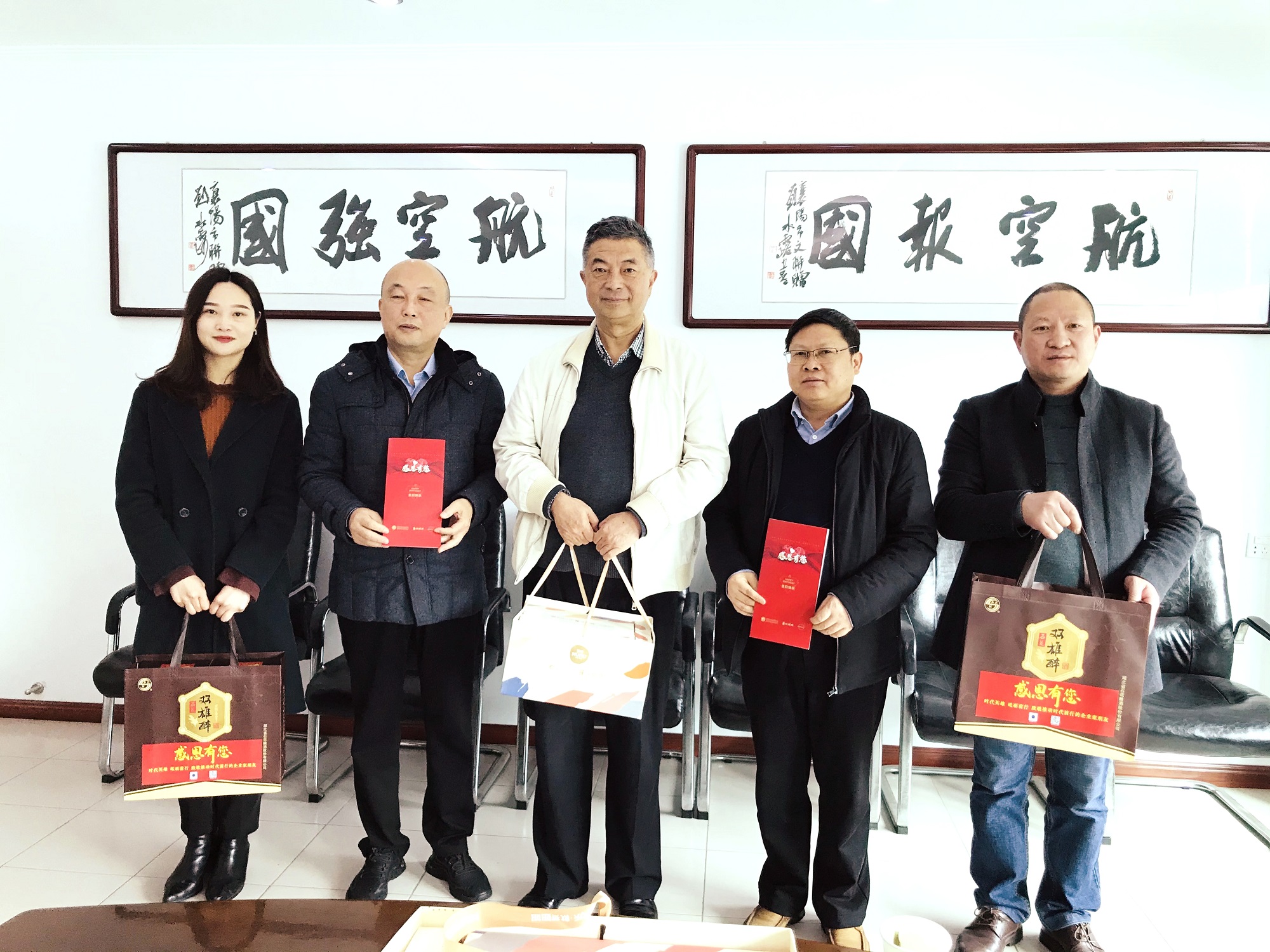 【雙雄醉贊助襄陽企業(yè)家暖心工程系列報道】趙恒董事長、曾建勇董事長、汪博興院長、航力機電王強董事長和汪國想總經(jīng)理收到多方生