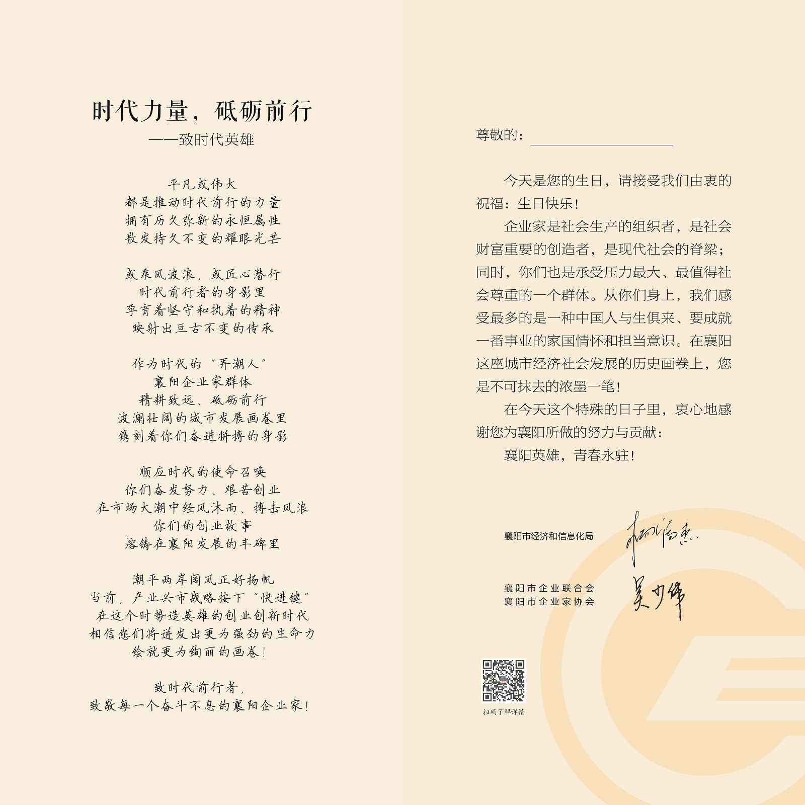 各個行業(yè)的企業(yè)家都是推動襄陽經(jīng)濟發(fā)展的前行力量,石花雙雄醉健康酒業(yè)攜手襄陽企聯(lián),與各行企業(yè)家一同成長,共同見證襄陽這座城市的騰飛!石花雙雄醉感謝每一位推動襄陽經(jīng)濟社會高質(zhì)量發(fā)展的優(yōu)秀企業(yè)家,致敬,襄陽英雄!