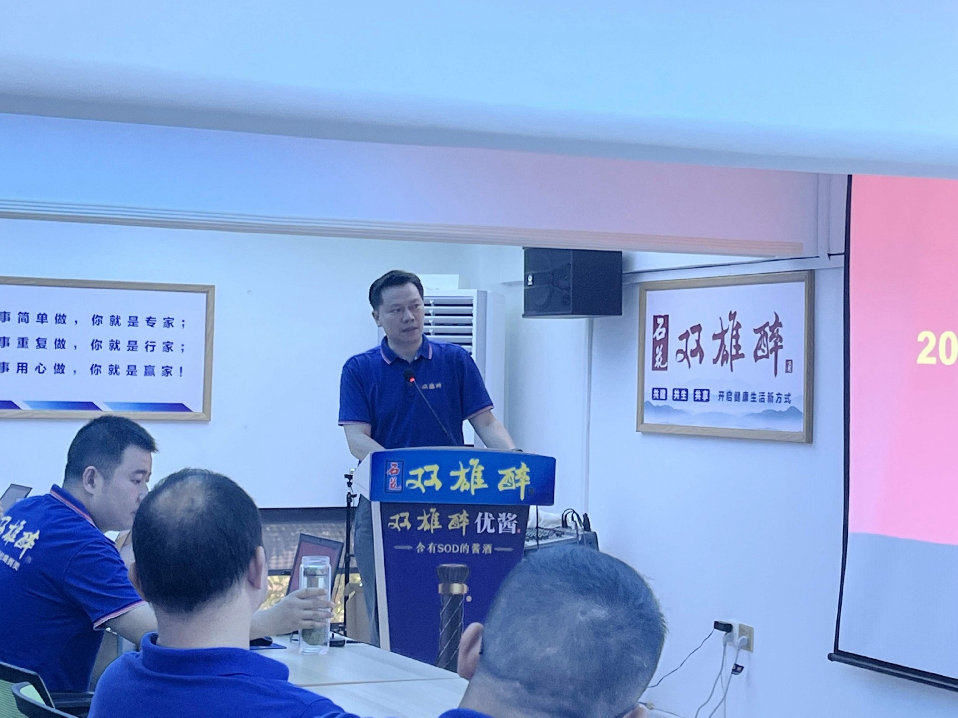 舉杯雙雄醉,英雄來相會。5月31日,石花雙雄醉60余位銷售精英齊聚雙雄醉健康酒業(yè)營銷中心,參加6月營銷表彰總結會議,總經(jīng)理鄭書軍、副總經(jīng)理楊建春及部分代理合伙人出席本次會議,會議由總經(jīng)理鄭書軍主持。