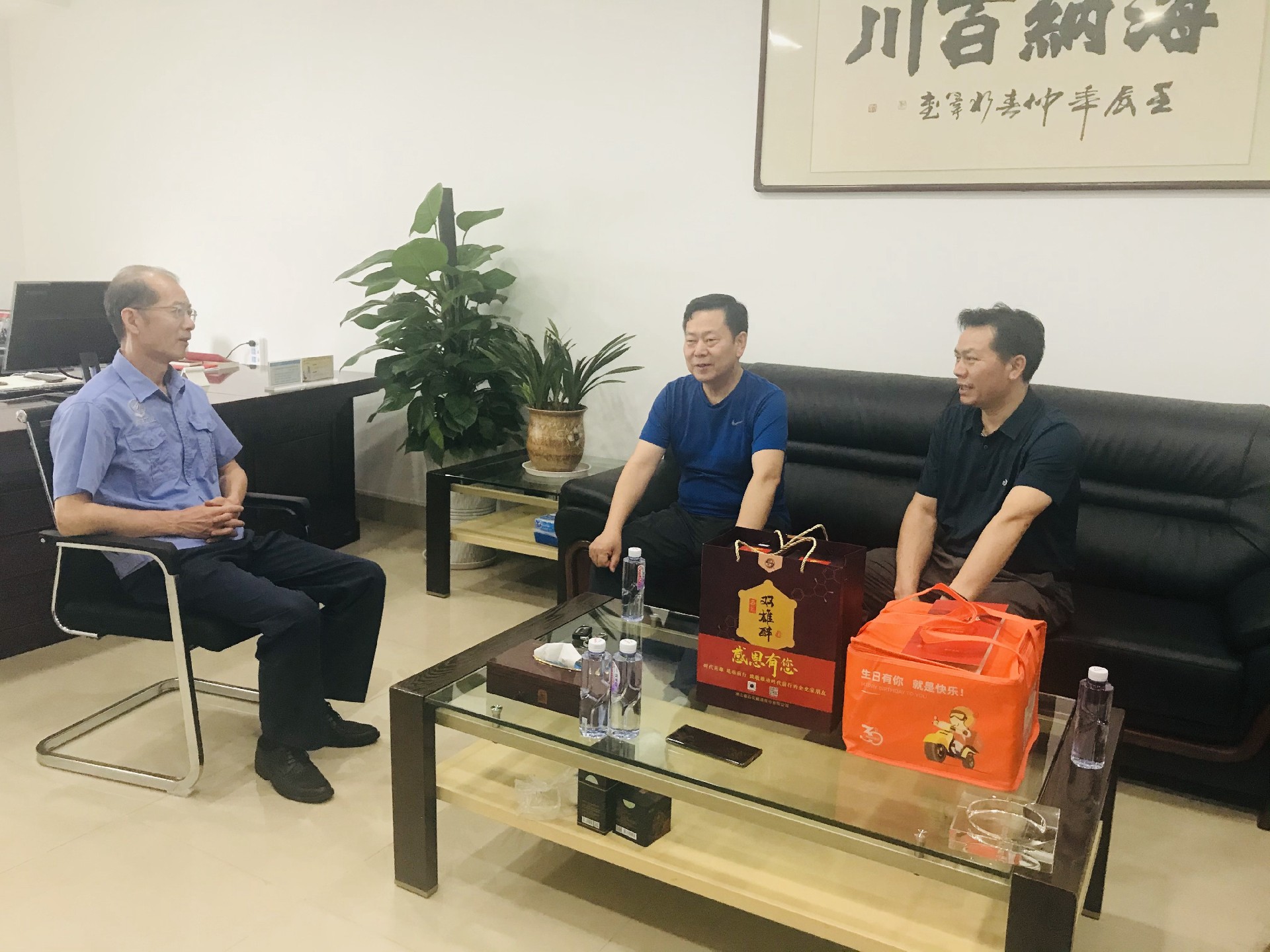 6月4日,這天是雙雄醉核心客戶龍大學(xué)的生日,襄陽企聯(lián)數(shù)據(jù)部部長劉輝與雙雄醉大客服務(wù)部總監(jiān)李愛軍一起為龍老板送上生日祝福、生日蛋糕以及雙雄醉含有SOD清分子的健康酒。