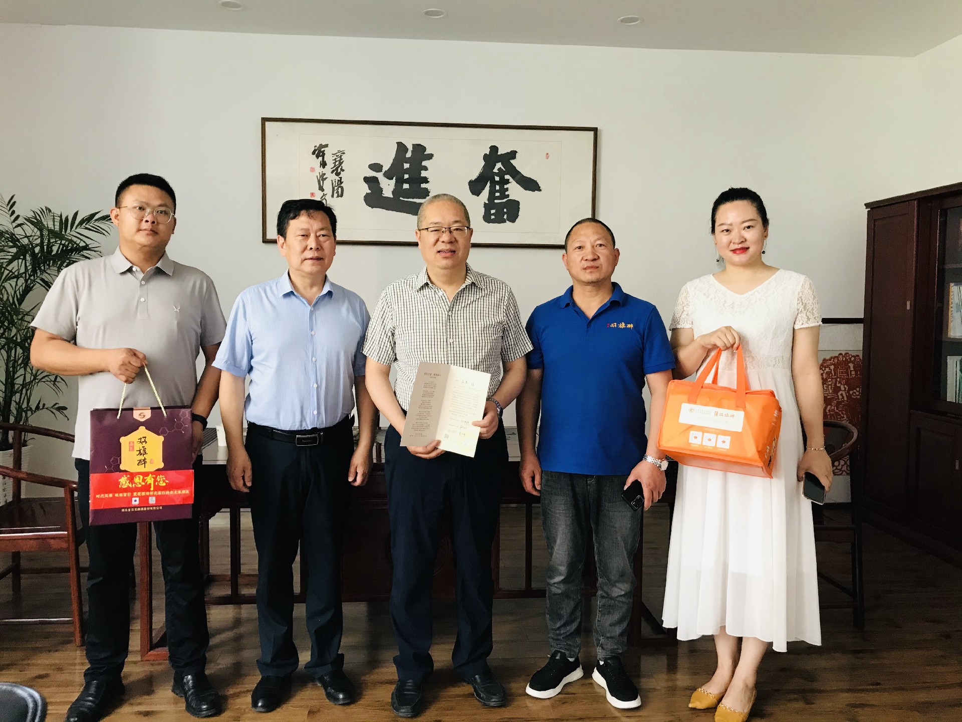 【雙雄醉贊助襄陽企業(yè)家暖心工程系列報道】航宇救生裝備董事長馬永勝、美年大健康總經(jīng)理岳勇、加盟合伙人龍大學(xué)、劉寶林收到暖心