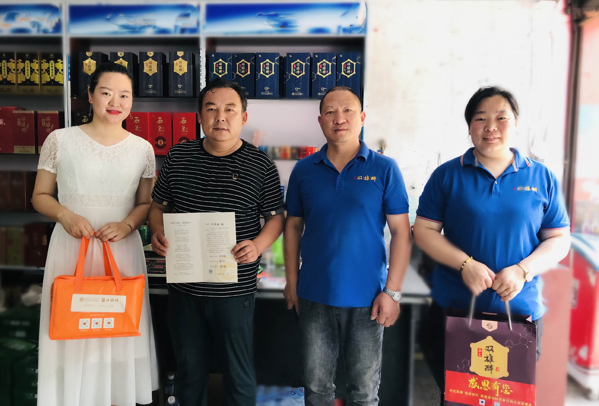 6月8日,正逢雙雄醉核心客戶劉保林的生日,雙雄醉大客服務(wù)部總監(jiān)李愛軍與襄城區(qū)域經(jīng)理王小紅一起為劉老板送上生日祝福、生日蛋糕以及雙雄醉含有SOD清分子的健康酒。雙雄醉祝兩位加盟合伙人生日快樂、生意興隆,希望能夠繼續(xù)加強(qiáng)合作、互惠共贏,共建共生共享!