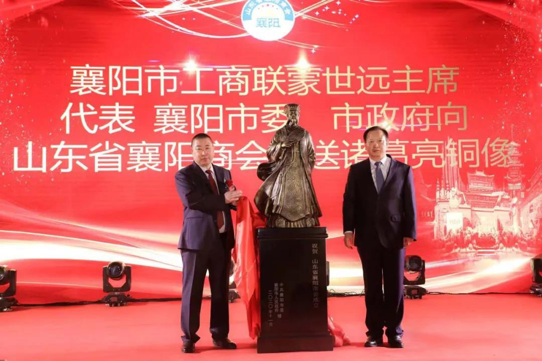 襄陽(yáng)市工商聯(lián)主席蒙世遠(yuǎn)代表襄陽(yáng)市委市政府贈(zèng)送諸葛亮銅像。