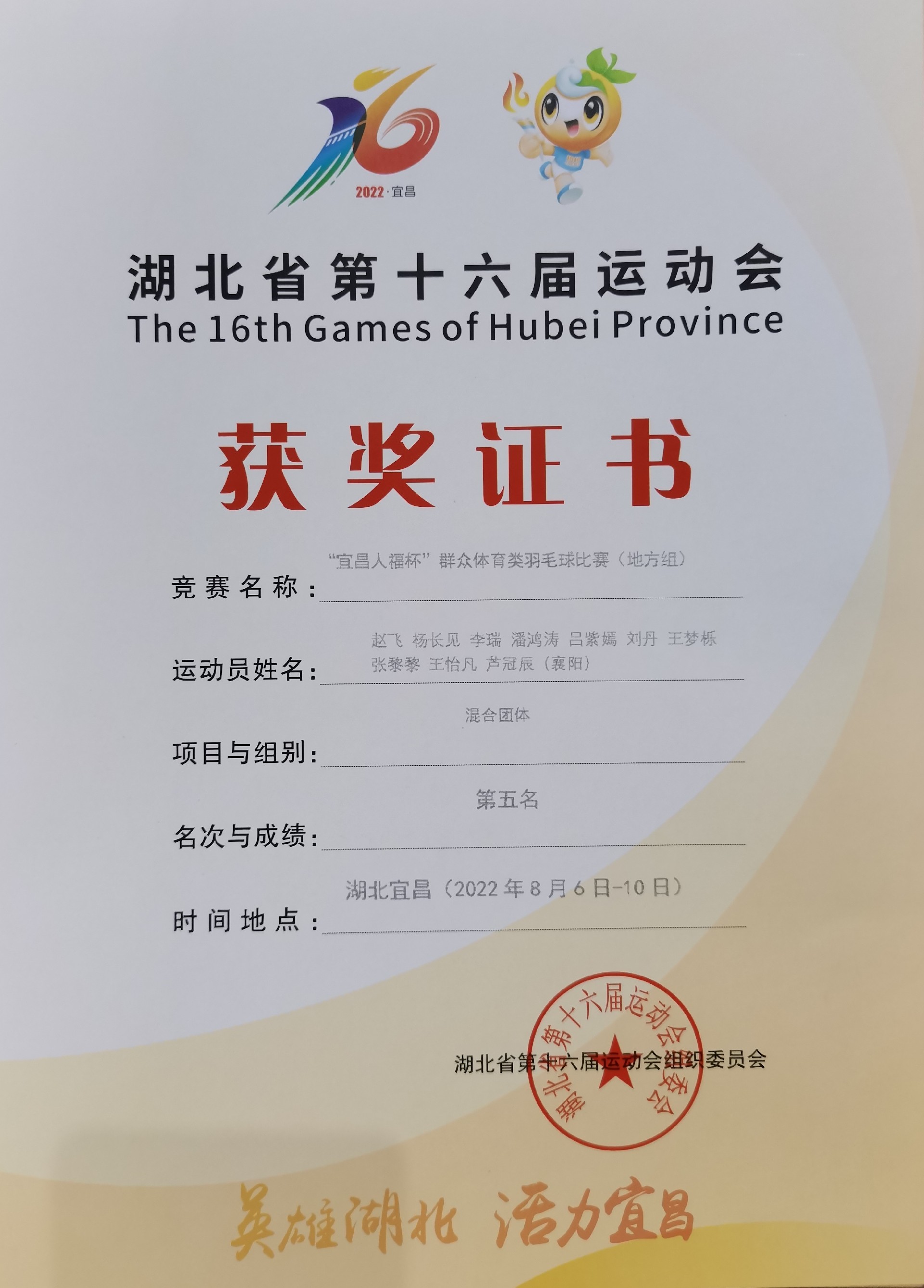 熱烈祝賀襄陽羽毛球代表隊(duì)榮獲湖北省第十六屆運(yùn)動會混合團(tuán)體第五名