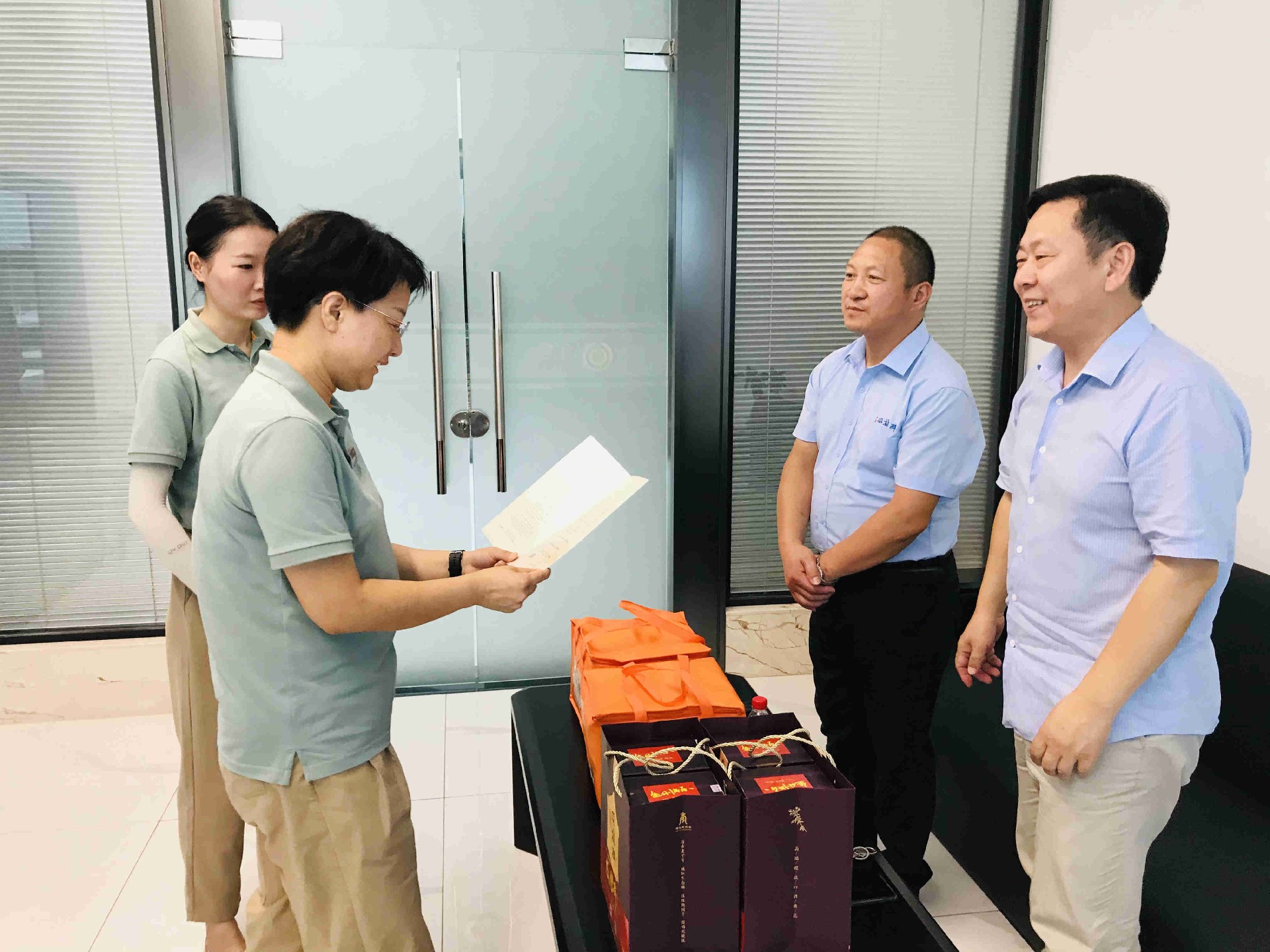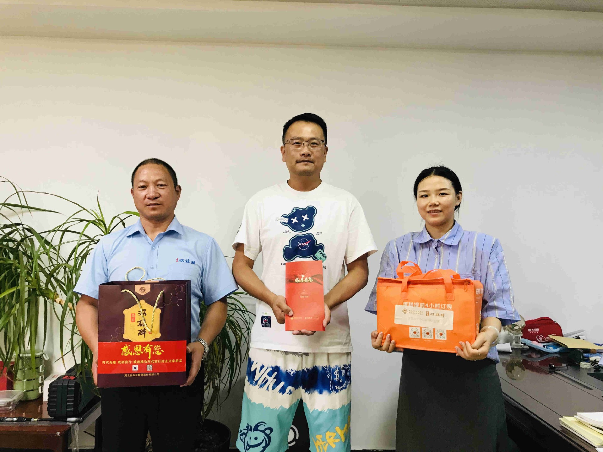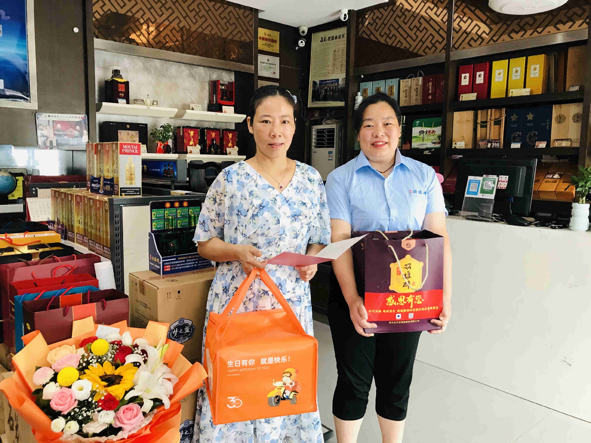 8月17日,正逢襄陽昂宇坤商貿(mào)有限公司王敏總的生日,雙雄醉健康酒業(yè)大客戶服務(wù)部總監(jiān)李愛軍與襄城區(qū)域經(jīng)理王小紅,帶著生日賀卡、生日蛋糕和雙雄醉含有SOD的健康酒,為過生日的王總送上生日祝福,祝愿王總生意蒸蒸日上,未來繼續(xù)與雙雄醉共創(chuàng)輝煌。