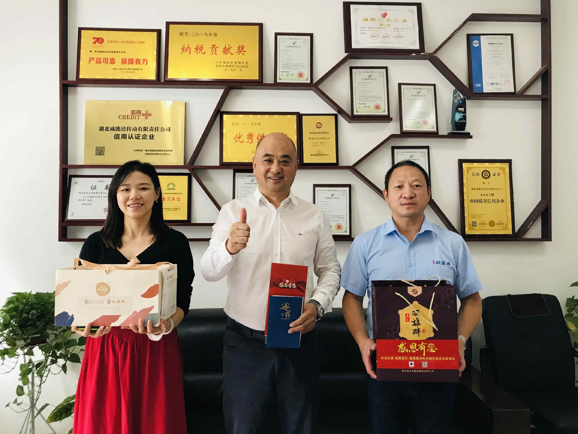 9月1日,襄陽企聯(lián)工作人員與雙雄醉大客戶總監(jiān)李愛軍來到湖北威能達(dá)傳動有限責(zé)任公司,為過生日的曾國董事長送上《襄陽英雄 青春永駐》的賀卡、生日蛋糕以及雙雄醉富含SOD的健康酒,祝曾總生日快樂、工作順利!