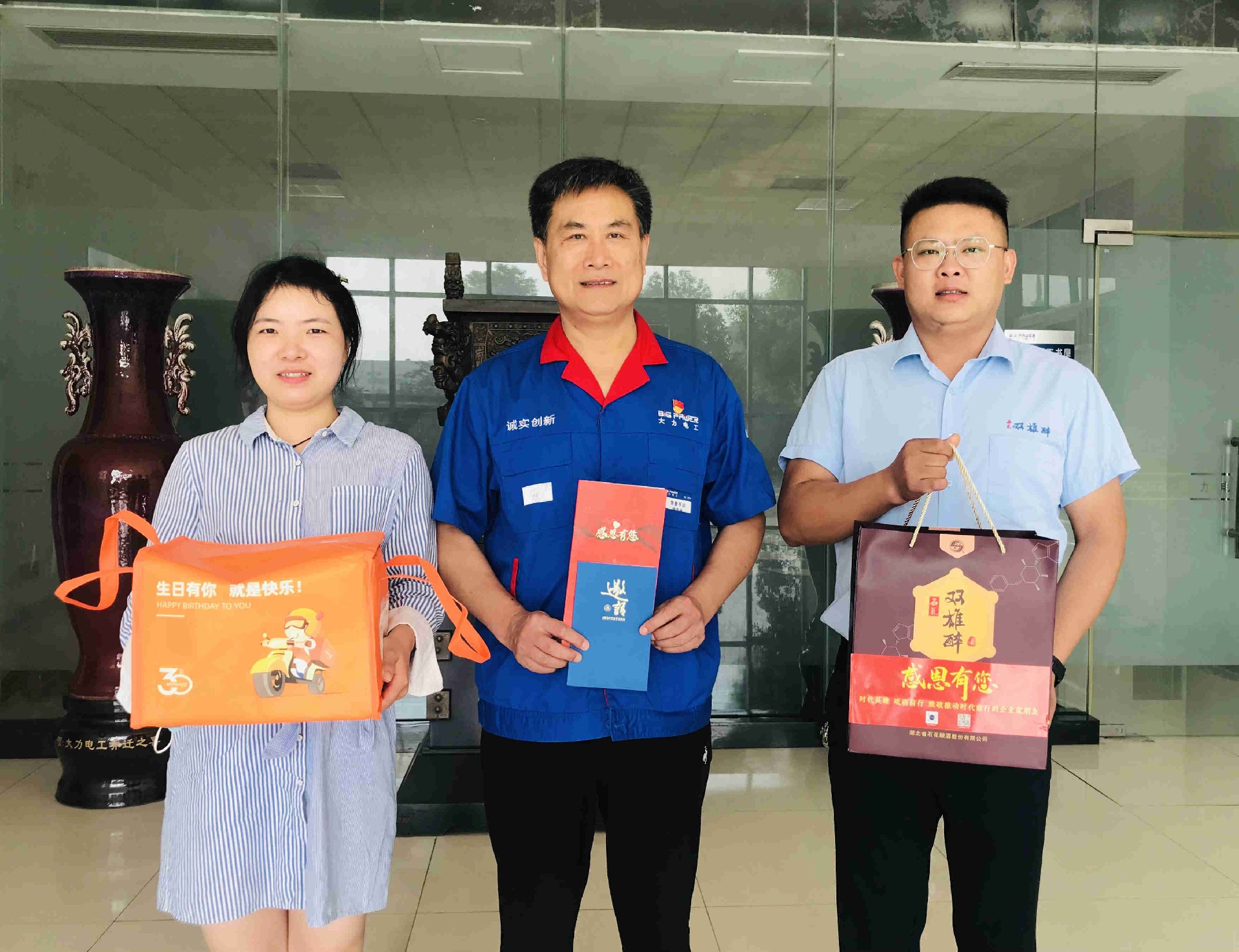 9月16日,正逢大力電工襄陽(yáng)股份有限公司董事長(zhǎng)高文廣的生日,襄陽(yáng)企聯(lián)工作人員、雙雄醉樊城區(qū)域經(jīng)理王謙一并為高總(由董事會(huì)秘書、黨委書記余志金代收)送上生日祝福,并獻(xiàn)上由襄陽(yáng)市領(lǐng)導(dǎo)付勁松副市長(zhǎng)、市經(jīng)信局楊富杰局長(zhǎng)和市企聯(lián)吳少偉會(huì)長(zhǎng)簽名的《襄陽(yáng)英雄 青春永駐》的賀卡、生日蛋糕以及雙雄醉富含SOD的白酒,并向高文廣董事長(zhǎng)致以誠(chéng)摯的生日祝福。