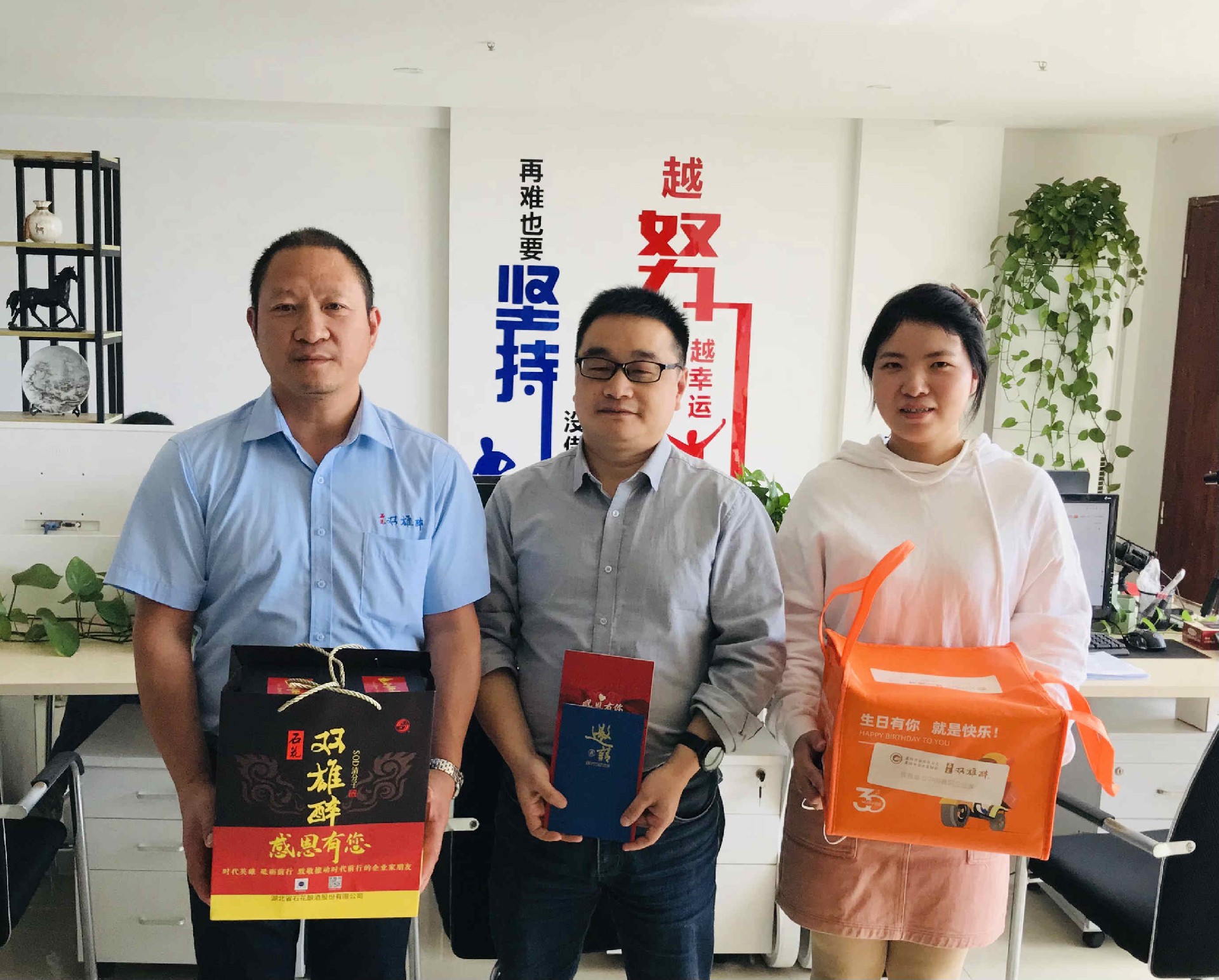 9月28日,襄陽企聯(lián)工作人員、雙雄醉大客戶總監(jiān)李愛軍,帶著生日賀卡、生日蛋糕和雙雄醉健康白酒 ,來到襄陽藍服人力資源有限公司,為負責人任衛(wèi)忠送上生日祝福,感謝任總為推動襄陽經(jīng)濟發(fā)展作出的貢獻!