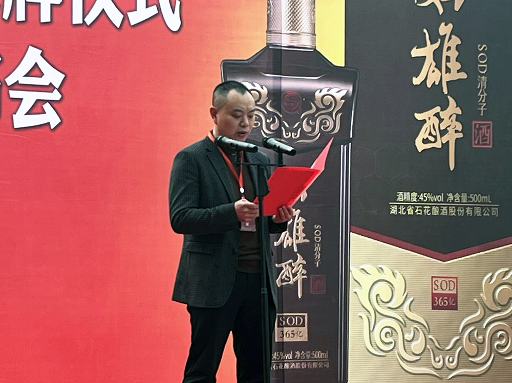 雙雄醉健康酒業(yè)總經(jīng)理鄭書軍主持了SOD365億酒上市發(fā)布會。鄭總指出,雙雄醉健康酒業(yè)是石花酒業(yè)的全資子公司,SOD365億是和霸王醉、一品石花酒一樣的子品牌,雙雄醉上市以來,得到了谷城老鄉(xiāng)的熱烈追捧,雙雄醉優(yōu)醬酒,是石花酒業(yè)繼霸王醉后的第二款過千元的(醬酒)產(chǎn)品。