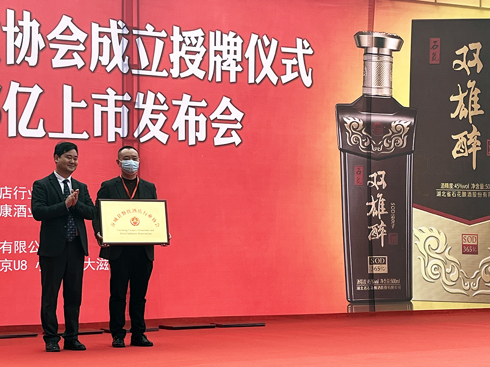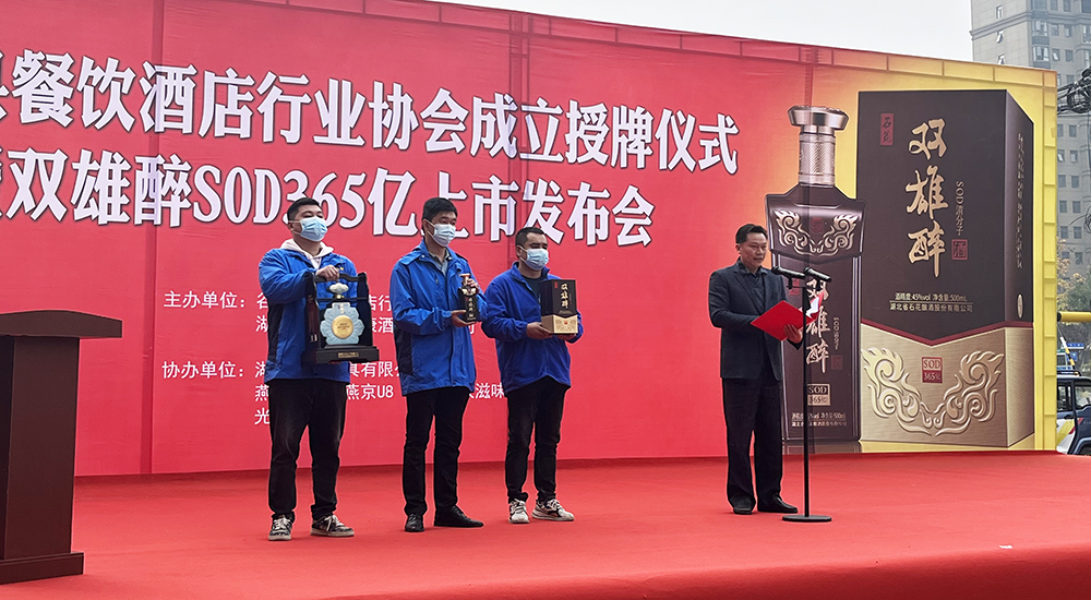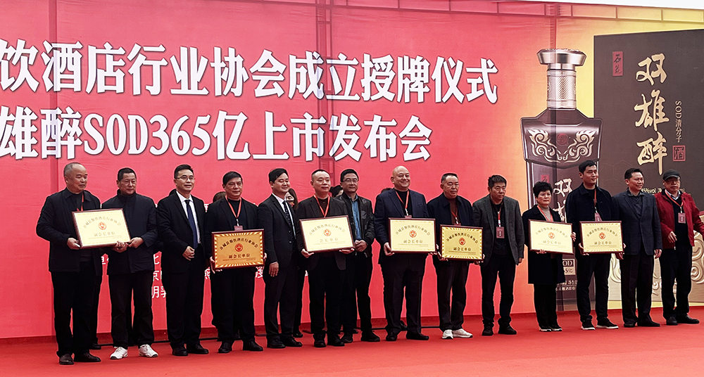 11月18日,谷城縣餐飲協(xié)會成立授牌儀式暨雙雄醉SOD365億酒上市發(fā)布會在谷城新博禧酒家舉行,谷城縣政協(xié)、市場監(jiān)督管理局領(lǐng)導(dǎo),谷城餐飲協(xié)會及來自十堰、丹江口、襄陽、棗陽、宜城、南漳等市縣餐飲協(xié)會、酒店同行等來賓近400人,見證了授牌和上市盛況。