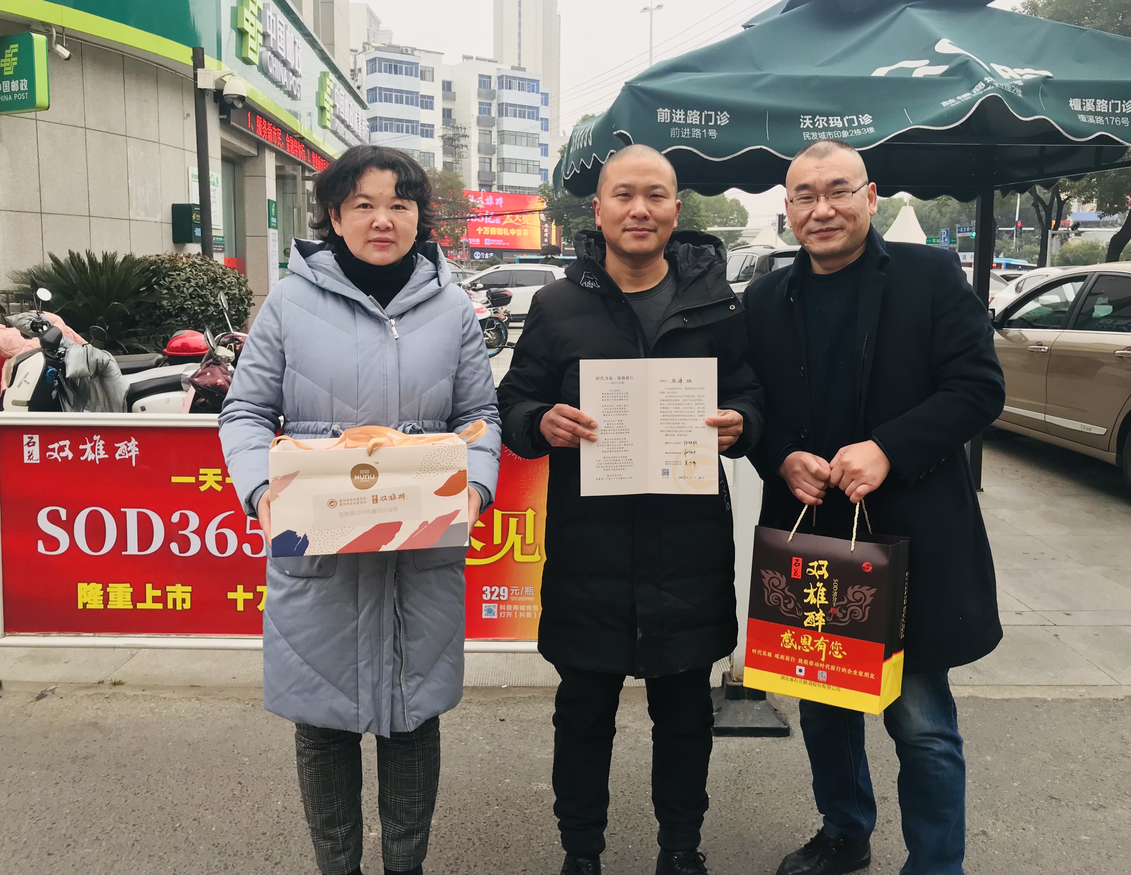 本周,襄陽企聯(lián)常務(wù)副秘書長申文寶和雙雄醉健康酒業(yè)總經(jīng)理鄭書軍、大客戶總監(jiān)李愛軍等,帶著由襄陽市領(lǐng)導(dǎo)付勁松副市長、市經(jīng)信局楊富杰局長和市企聯(lián)吳少偉會(huì)長簽名的《襄陽英雄 青春永駐》的賀卡、生日蛋糕以及雙雄醉SOD365億健康白酒。分別為湖北三沃力源航天科技有限公司董事長喬應(yīng)克、湖北三沃力源航天科技有限公司總經(jīng)理劉智昊、車橋副食批發(fā)總經(jīng)理 李玉波、襄陽東津獅子頭醬品廠總經(jīng)理尚峰、新興重工湖北三六一一機(jī)械有限公司黨委書記/董事長邵京城、襄陽市總工會(huì)(專家會(huì)員)副主席周萍、湖北漢丹機(jī)電有限公司黨委書記朱勇斌、華新水泥襄陽襄城有限公司執(zhí)行總經(jīng)理曹小鋒、湖北中航精機(jī)科技有限公司黨委書記/執(zhí)行董事高健、湖北中油優(yōu)藝環(huán)??萍技瘓F(tuán)有限公司董事長王春山、襄陽群龍汽車部件股份有限公司總經(jīng)理岳國生、湖北正佳拍賣有限公司總經(jīng)理趙芳等過生日的企業(yè)家朋友送去暖心生日祝福,感謝企業(yè)家朋友們?yōu)橄尻柦?jīng)濟(jì)發(fā)展作出的卓越貢獻(xiàn)!