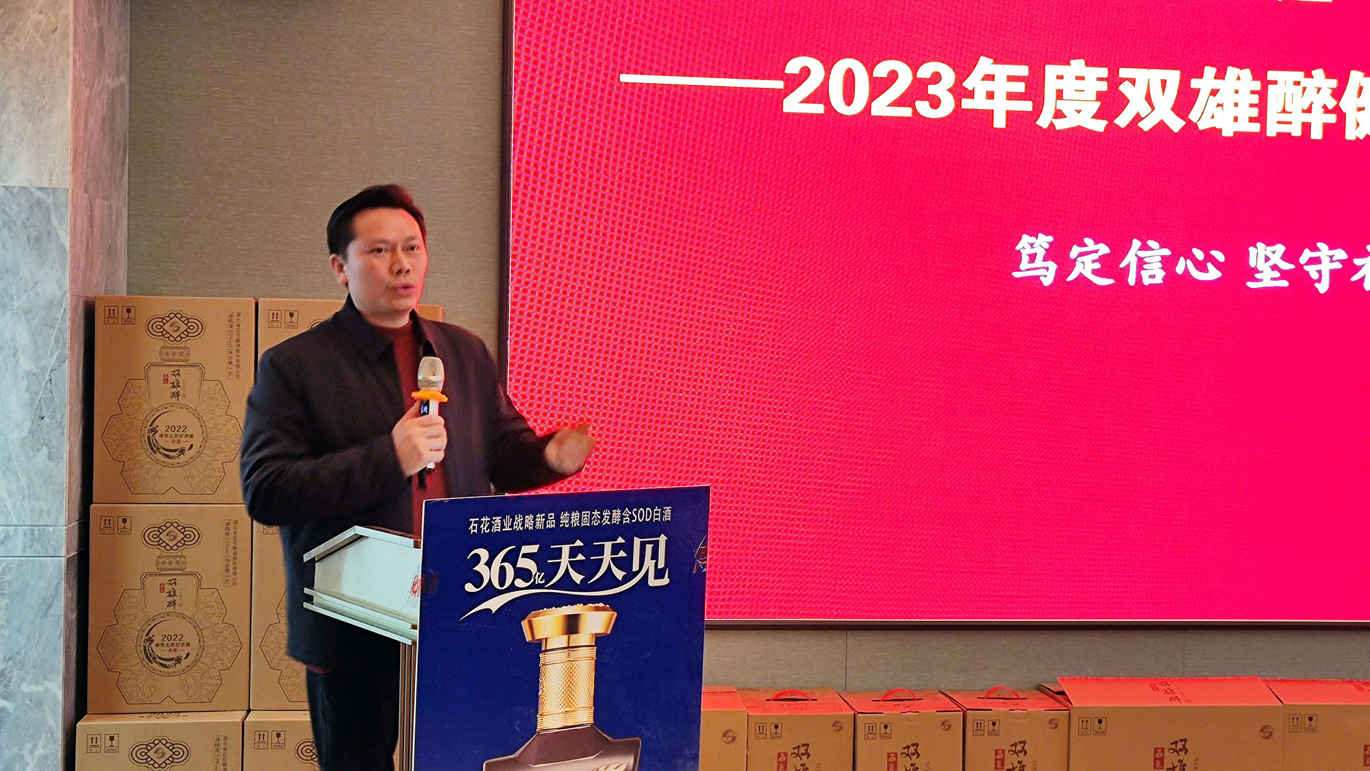 雙雄醉健康酒業(yè)總經(jīng)理鄭書軍向所有辛苦付出的戰(zhàn)略合伙人表示真誠的謝意,并向現(xiàn)場獲得獎勵的戰(zhàn)略合伙人表示祝賀,并預祝所有的合作伙伴2023業(yè)績翻番,收入翻番。鄭總強調,隨著3年疫情的結束和消費市場的回暖,新的一年,我們將不斷提高產(chǎn)品品質,全心全意地筑牢根基,下定決心培育好核心客戶和核心消費者,進一步深化合伙人機制,與合作伙伴一起,重塑重做,奮勇前進!2023,一定會大有作為!