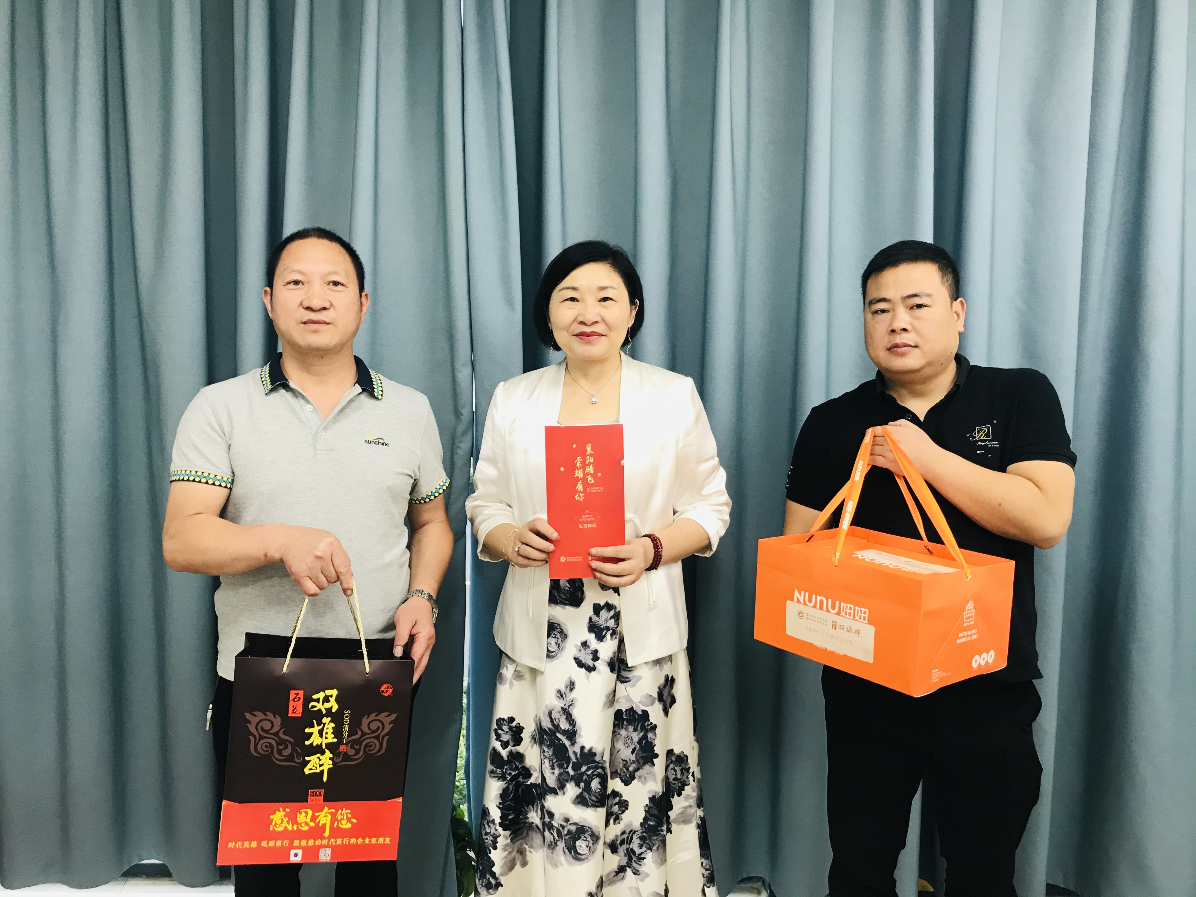 本周,石花酒業(yè)副總經(jīng)理、雙雄醉健康酒業(yè)總經(jīng)理鄭書軍、雙雄醉大客戶總監(jiān)李愛軍和襄陽(yáng)企聯(lián)工作人員一起,帶著由襄陽(yáng)市領(lǐng)導(dǎo)徐冰副市長(zhǎng)、市經(jīng)信局楊富杰局長(zhǎng)和市企聯(lián)吳少偉會(huì)長(zhǎng)簽名的《襄陽(yáng)英雄 青春永駐》的賀卡、生日蛋糕以及雙雄醉SOD365億白酒。分別為大力電工襄陽(yáng)股份有限公司副總裁環(huán)??偨?jīng)理胡其寅、漢江城建集團(tuán)有限公司總經(jīng)理助理龔志軍、博拉經(jīng)緯纖維有限公司總經(jīng)理朱永軍、湖北時(shí)瑞達(dá)重型工程機(jī)械有限公司黨委書記胡艷、綠盾(襄陽(yáng))信息管理有限公司總經(jīng)理張華等過(guò)生日的企業(yè)家朋友送去暖心生日祝福,感謝企業(yè)家朋友們?yōu)橄尻?yáng)經(jīng)濟(jì)發(fā)展作出的卓越貢獻(xiàn)!