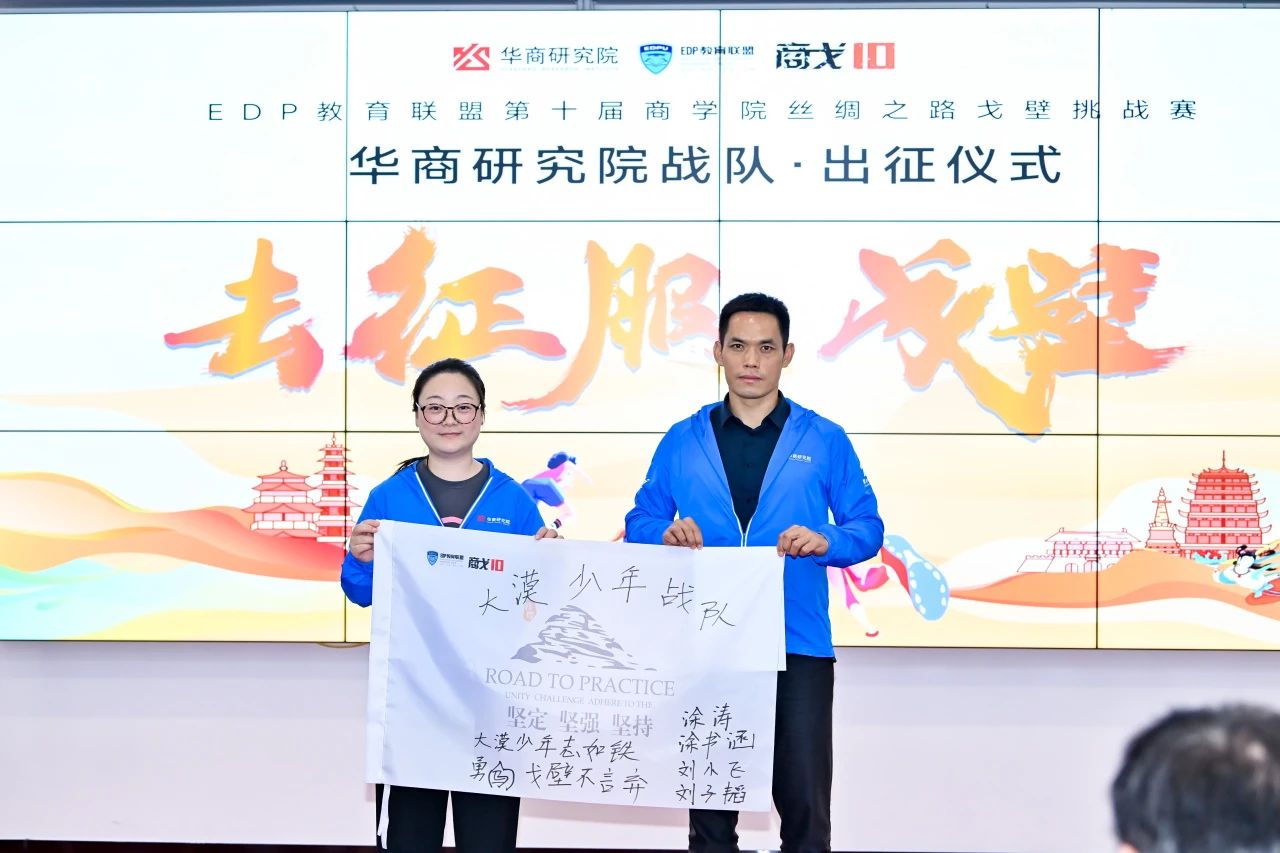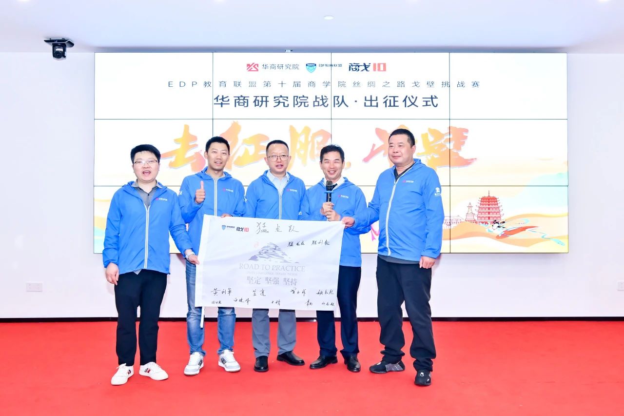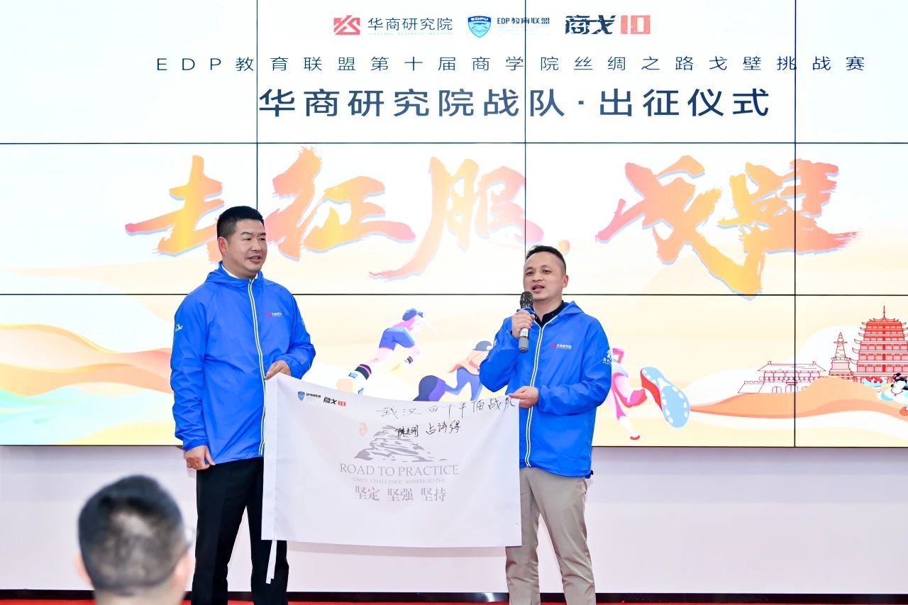 總教練涂濤從總指揮彭斌手中鄭重接過(guò)代表著企業(yè)家精神和戈壁精神的戰(zhàn)隊(duì)旗幟。高舉隊(duì)旗,揮舞吶喊,展示著華商戰(zhàn)隊(duì)颯爽英姿和必勝的決心,現(xiàn)場(chǎng)所有人心潮澎湃,熱血沸騰,進(jìn)軍戈壁的征途從此刻開啟。
