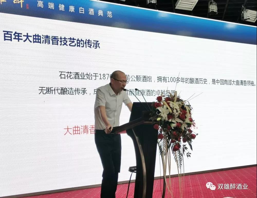 湖北省石花釀酒股份公司董事長(zhǎng)、總經(jīng)理曹盧波代表舉辦方致歡迎詞,他指出,在上個(gè)世紀(jì)80年代未,湖北石花酒廠在中國(guó)著名白酒專(zhuān)家“南陶北高”陶家馳、高景炎的主持下,雙雄醉酒成功研發(fā)并上市;在中國(guó)白酒經(jīng)歷了黃金十年后,白酒市場(chǎng)進(jìn)入了深度調(diào)整期,消費(fèi)者對(duì)健康、時(shí)尚白酒的需求日漸顯現(xiàn),“健康白酒”這一白酒細(xì)分市場(chǎng)呈現(xiàn)規(guī)?;鲩L(zhǎng),為此,石花酒業(yè)從2016開(kāi)始,在原雙雄醉酒釀造技術(shù)基礎(chǔ)上,增加了黑小麥等“藥食兩用”健康原料,秉承地缸發(fā)酵傳統(tǒng)工藝,2018年年底,全新的雙雄醉健康酒研發(fā)成功,兼具傳統(tǒng)白酒風(fēng)味與豐富健康成分雙重特點(diǎn),更好喝、更健康。