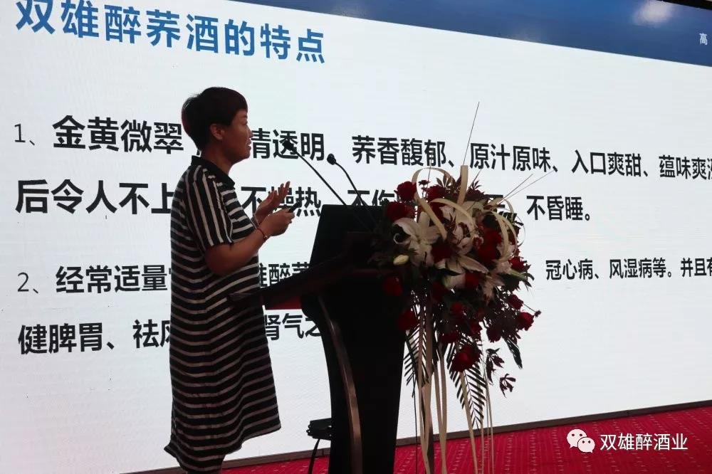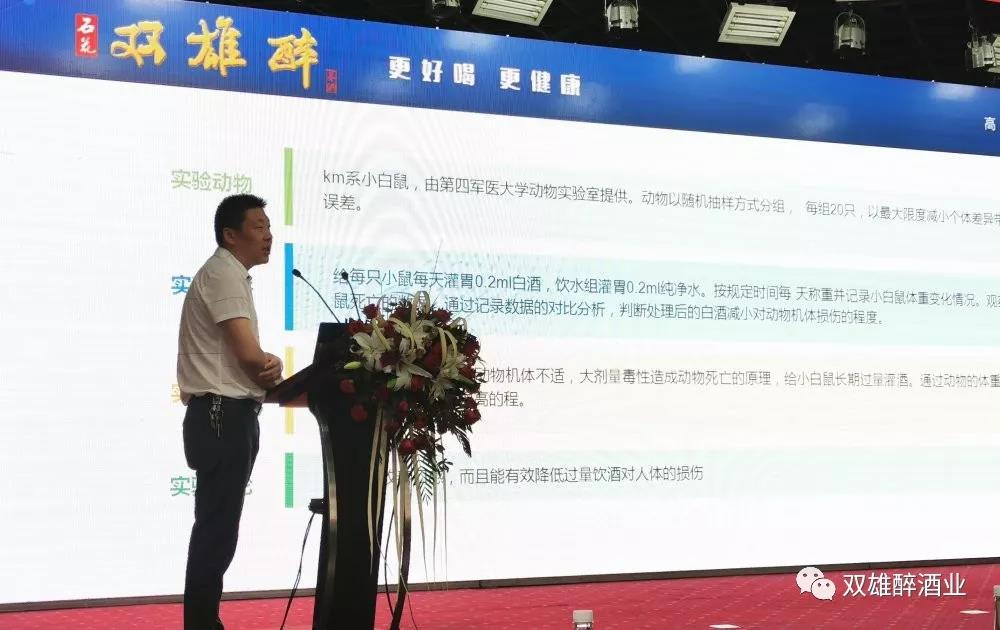 隨后,參與雙雄醉健康酒研發(fā)的兩位專(zhuān)家:中國(guó)高級(jí)評(píng)酒師、連續(xù)三屆白酒國(guó)家評(píng)委、中國(guó)漢江流域生態(tài)白酒研究院專(zhuān)家盧敏和國(guó)家級(jí)釀酒大師、雙雄醉健康酒研發(fā)專(zhuān)家之一劉中軍,分別就雙雄醉的產(chǎn)品風(fēng)味特色、權(quán)威質(zhì)檢報(bào)告,以及雙雄醉研發(fā)過(guò)程、獨(dú)特釀造工藝進(jìn)行了講解,特別是盧敏出示的質(zhì)檢報(bào)告中,顯示雙雄醉中含有的SOD等關(guān)鍵健康因子含量遠(yuǎn)超市場(chǎng)同類(lèi)產(chǎn)品,讓與會(huì)人員為之振奮。