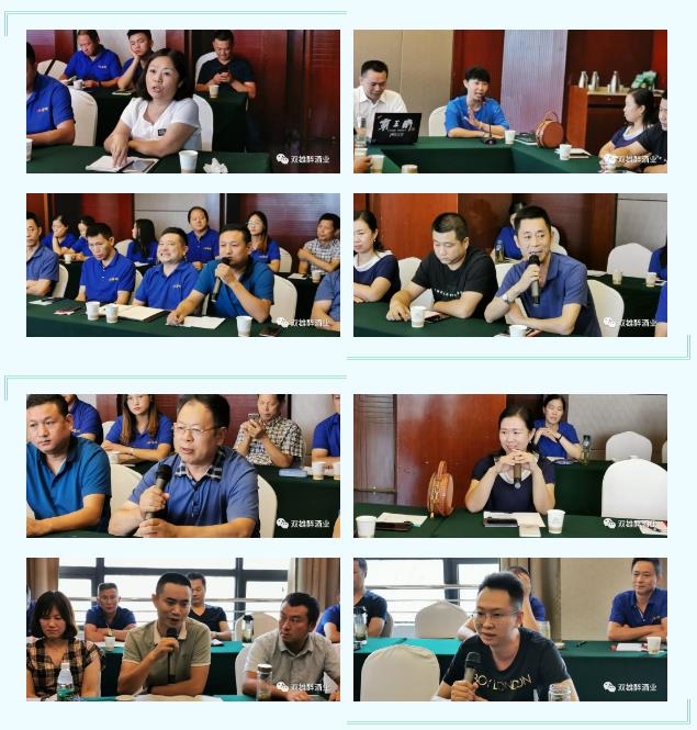 隨后,來自各地的戰(zhàn)略合作伙伴一一分享感受和下階段的打算。開封的合作伙伴說,要想賣好酒,先要做好人,資源要前置性投入,要做好圈層營銷;十堰的合作伙伴指出,培育核心客戶的忠誠度是當前的重要課題;荊門的合作伙伴表示,雙雄醉的產(chǎn)品優(yōu)勢非常明顯,無論是口感還是包裝,消費者認可度在95%以上;襄陽商超的合作伙伴指出,雙雄醉的五支產(chǎn)品組合太好了,完全可以組建3個專業(yè)團隊來操作,價值鏈的設(shè)計具備了讓在座各位一年掙幾百萬上千萬的潛力,當老板就是要把利益分配好,其他的事情讓大家來做;來自襄城的合作伙伴指出,自己家的一個店,一個月能銷出4、5萬的雙雄醉酒,只要把雙雄醉健康酒當事業(yè)來做,未來必可期。來自南漳、宜城、樊城、襄州、臥龍等地的合作伙伴發(fā)言時指出,雙雄醉上市時間不到3個月,現(xiàn)在的市場表現(xiàn)可圈可點,隨著天氣轉(zhuǎn)涼旺季到來,下半年一定會更好。